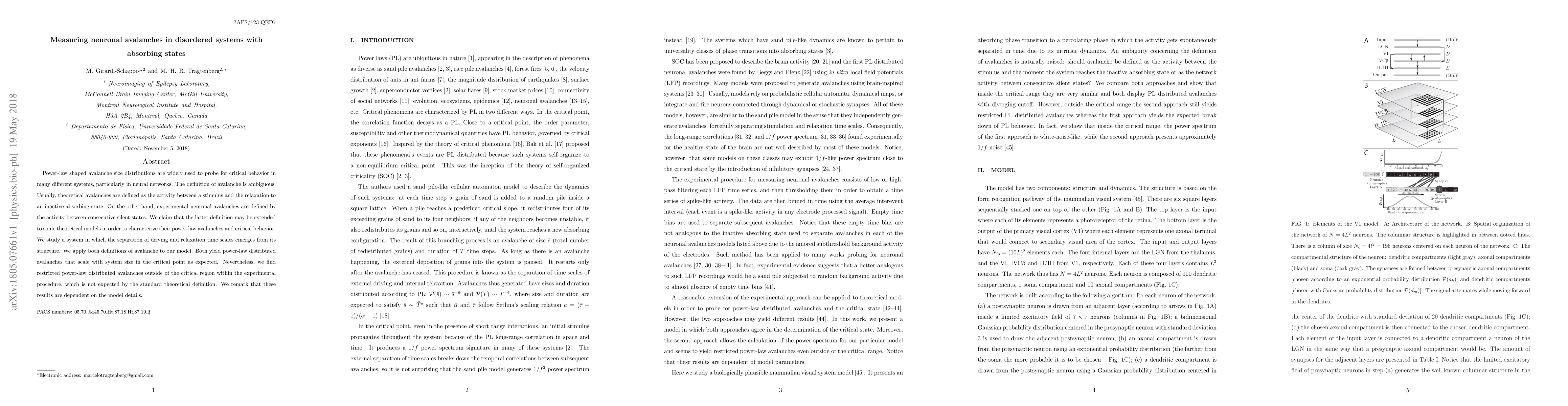 This paper investigates the definition of neuronal avalanches in disordered systems with absorbing states, comparing theoretical and experimental approaches. It finds that both definitions yield power-law-distributed avalanches at the critical point, but experimental definitions reveal unexpected restricted power-law distributions outside the critical region, highlighting model-specific nuances.