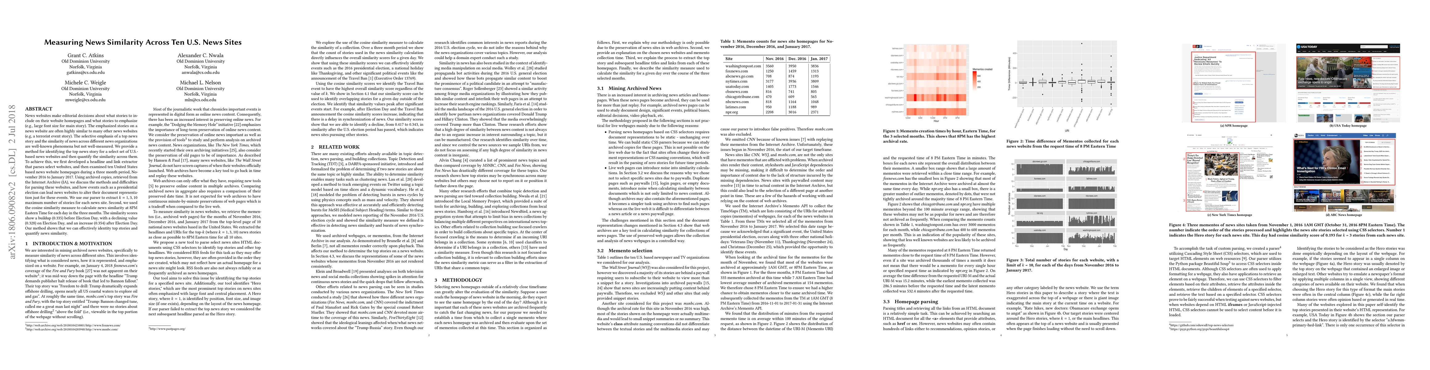 This paper develops a method to identify and quantify the top news stories across ten U.S. news websites, and measures the similarity of these stories using cosine similarity. The study finds notable fluctuations in news similarity, particularly around the 2016 U.S. presidential election.