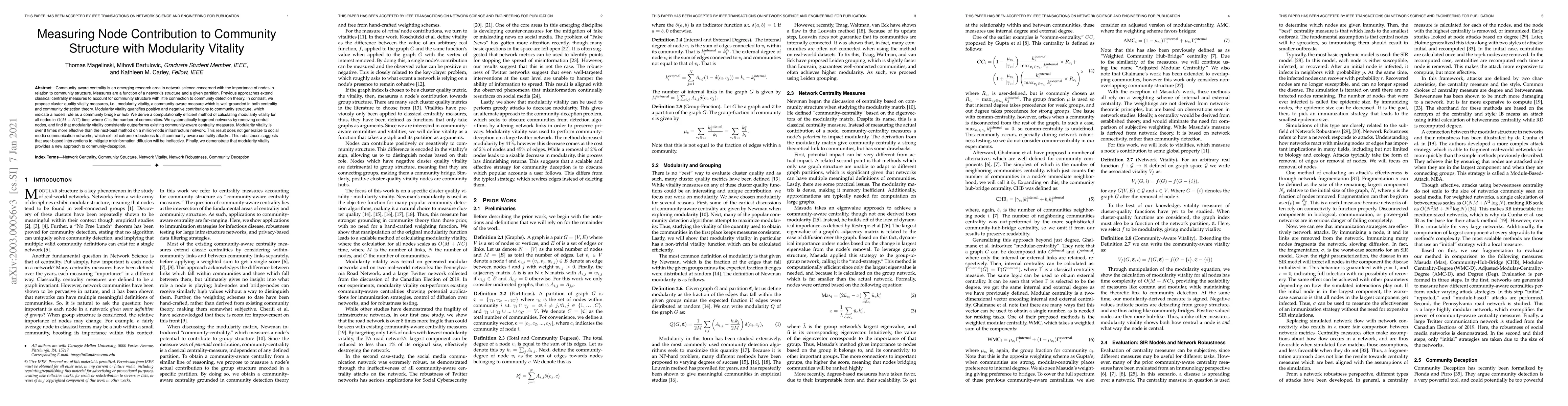 This paper introduces modularity vitality as a community-aware centrality measure grounded in both centrality and community detection theory. It outperforms existing measures in identifying critical nodes in infrastructure networks, though it is less effective in social media networks, indicating limited success in combating misinformation.