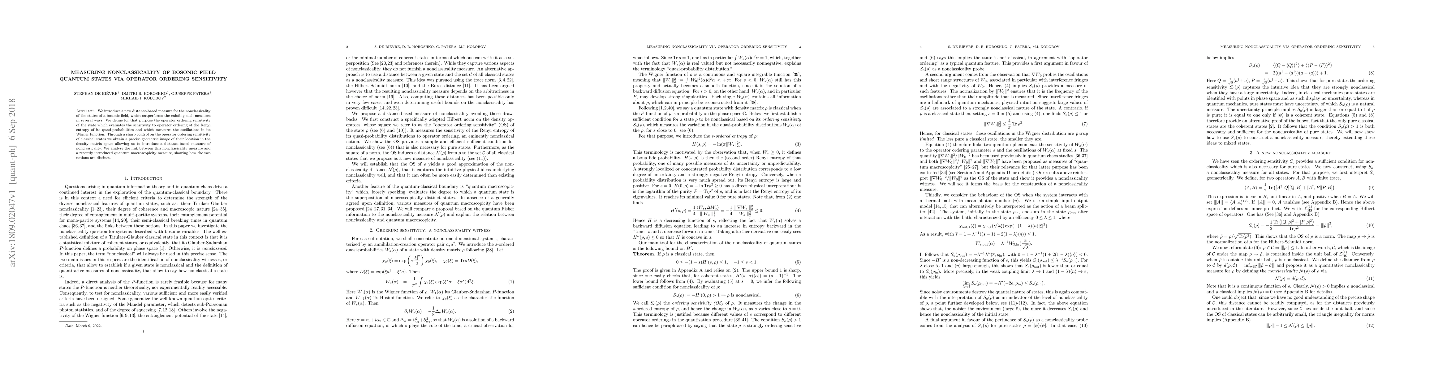 This paper introduces a new measure for nonclassicality in bosonic field states, based on operator ordering sensitivity, which outperforms existing measures. The measure is linked to the Renyi entropy and Wigner function, and it provides a distinct notion from quantum macroscopicity.