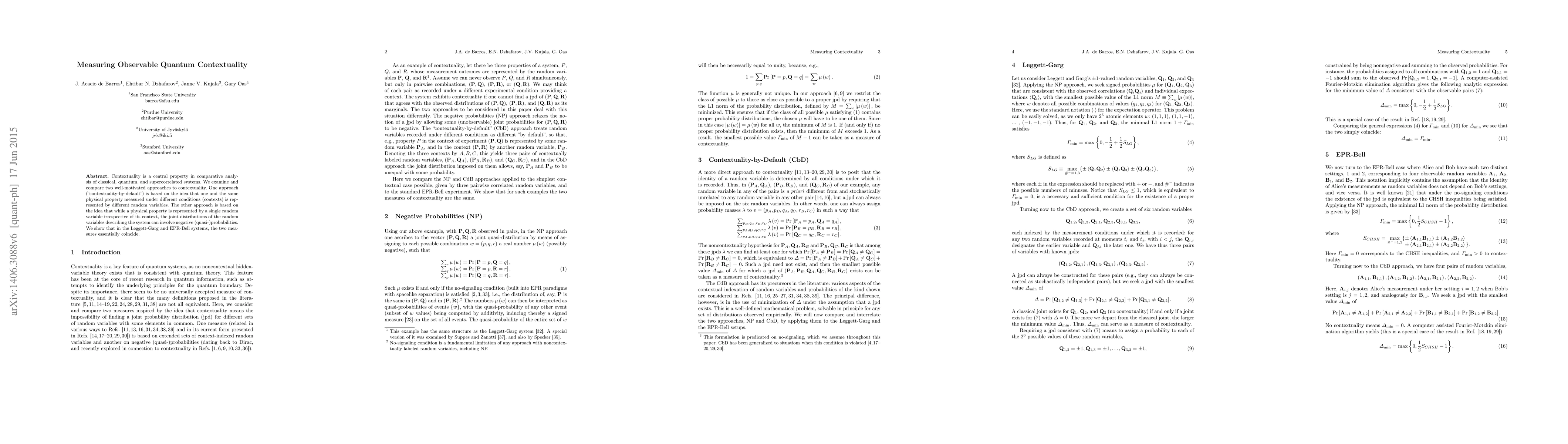 Contextuality is a central property in comparative analysis of classical, quantum, and supercorrelated systems. We examine and compare two well-motivated approaches to contextuality. One approach ("contextuality-by-default") is based on the idea that one and the same physical property measured under different conditions (contexts) is represented by different random variables. The other approach is based on the idea that while a physical property is represented by a single random variable irrespective of its context, the joint distributions of the random variables describing the system can involve negative (quasi-)probabilities. We show that in the Leggett-Garg and EPR-Bell systems, the two measures essentially coincide.