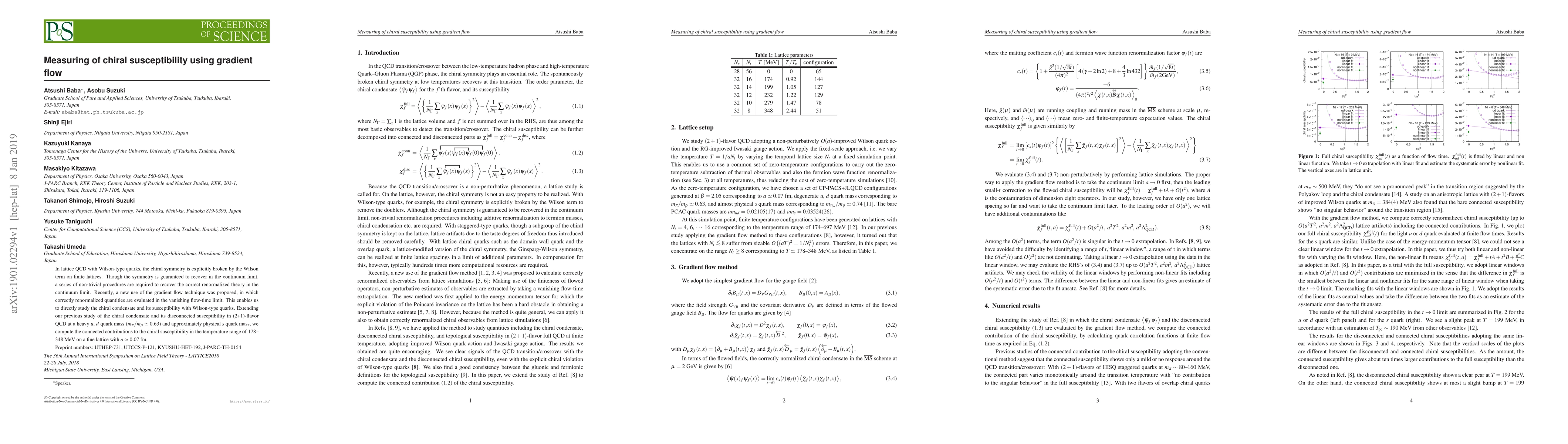 This work distinguishes itself by directly studying the chiral condensate and its susceptibility with Wilson-type quarks using the gradient flow technique, enabling a more straightforward evaluation of renormalized quantities in the vanishing flow-time limit.