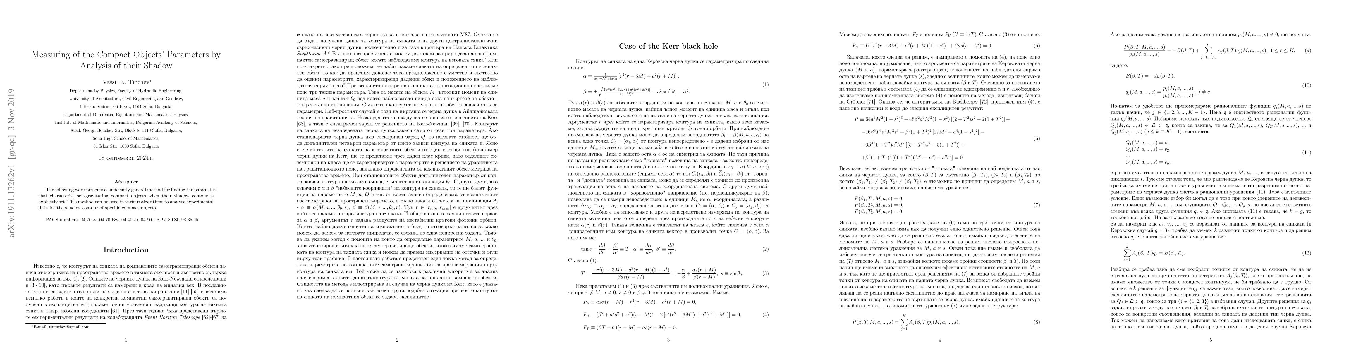 The following work presents a sufficiently general method for finding the parameters that characterise self-gravitating compact objects when their shadow contour is explicitly set. This method can be used in various algorithms to analyse experimental data for the shadow contour of specific compact objects.