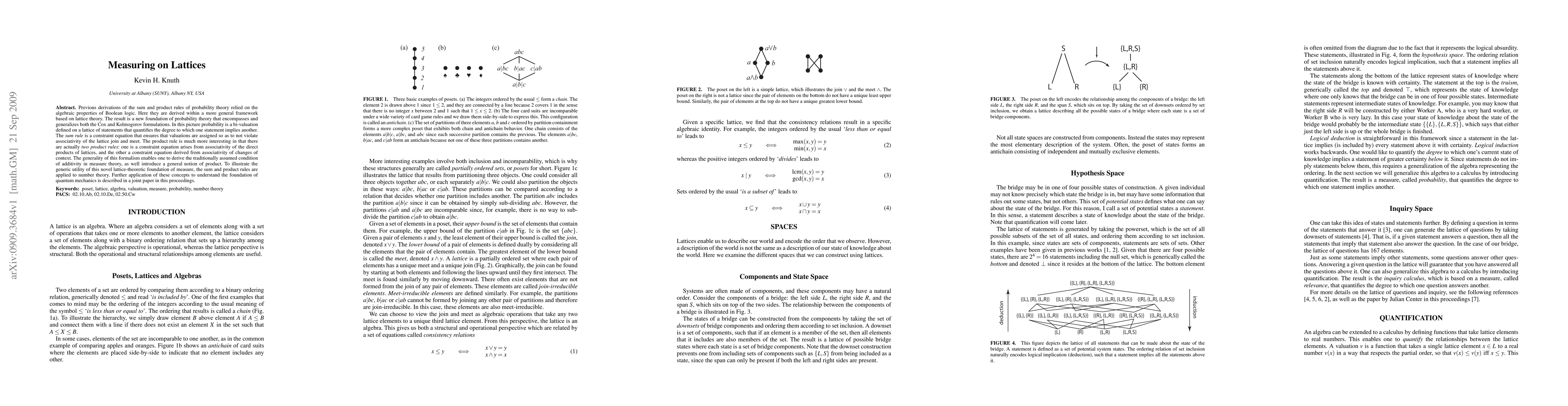 This paper develops a new mathematical foundation for probability theory using lattice structures, generalizing traditional approaches and connecting to number theory and quantum mechanics. It shows how probability rules can be derived from the properties of logical relationships, offering broader insights into measurement and inference.