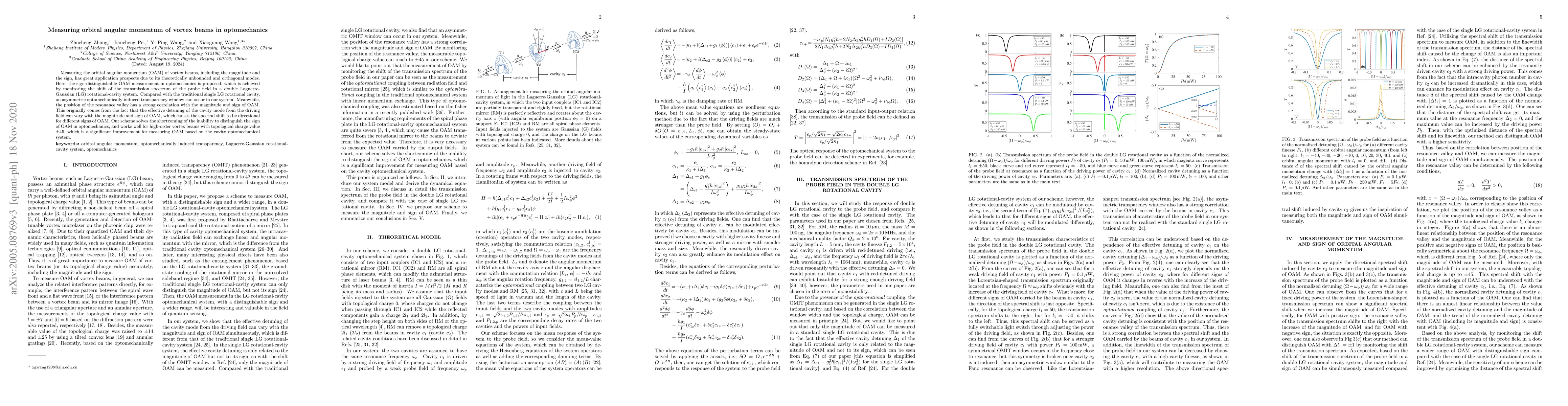 This paper proposes a novel optomechanical method to measure the orbital angular momentum (OAM) of vortex beams, including both the magnitude and the sign, by monitoring the transmission spectrum shift in a double Laguerre-Gaussian rotational-cavity system. This approach overcomes the limitation of traditional systems by distinguishing OAM signs and effectively works for high-order vortex beams with topological charge values of ±45.