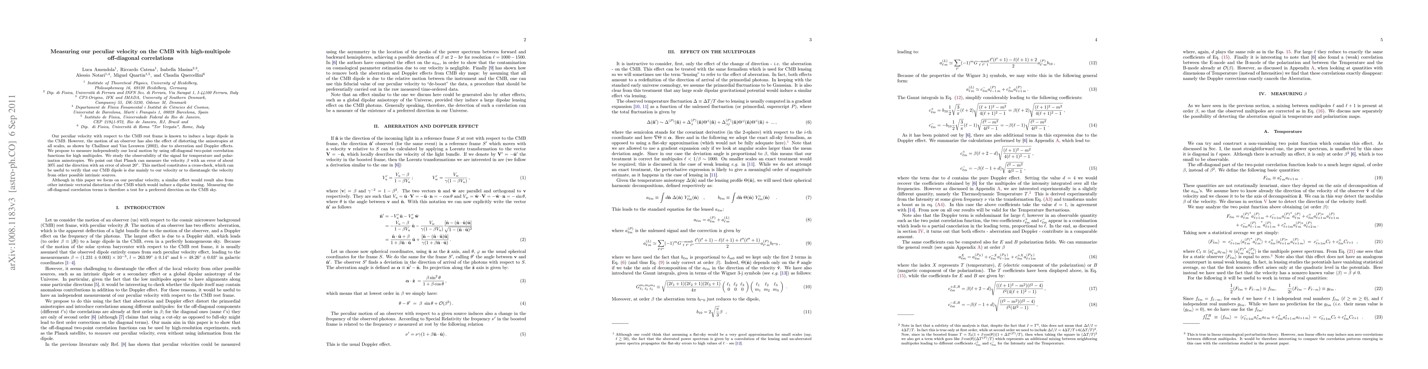 Our peculiar velocity with respect to the CMB rest frame is known to induce a large dipole in the CMB. However, the motion of an observer has also the effect of distorting the anisotropies at all scales, as shown by Challinor and Van Leeuwen (2002), due to aberration and Doppler effects. We propose to measure independently our local motion by using off-diagonal two-point correlation functions for high multipoles. We study the observability of the signal for temperature and polarization anisotropies. We point out that Planck can measure the velocity $\beta$ with an error of about 30% and the direction with an error of about 20 degrees. This method constitutes a cross-check, which can be useful to verify that our CMB dipole is due mainly to our velocity or to disentangle the velocity from other possible intrinsic sources. Although in this paper we focus on our peculiar velocity, a similar effect would result also from other intrinsic vectorial distortion of the CMB which would induce a dipolar lensing. Measuring the off-diagonal correlation terms is therefore a test for a preferred direction on the CMB sky.