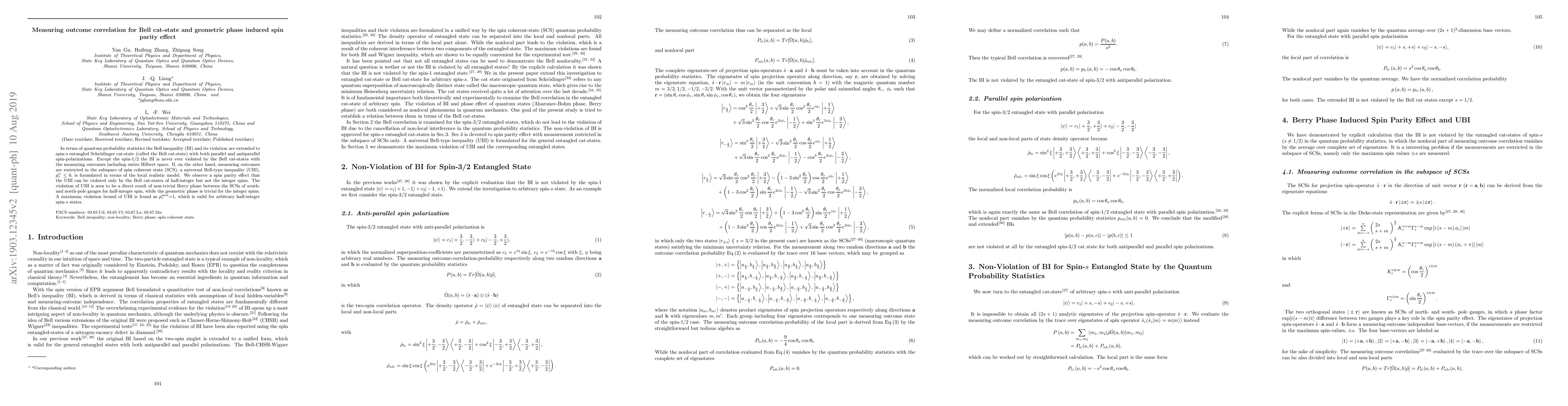 In terms of quantum probability statistics the Bell inequality (BI) and its violation are extended to spin-$s$ entangled Schr\"{o}dinger cat-state (called the Bell cat-state) with both parallel and antiparallel spin-polarizations. The BI is never ever violated for the measuring outcome probabilities evaluated over entire two-spin Hilbert space except the spin-$1/2$ entangled states. A universal Bell-type inequality (UBI) denoted by $p_{s}^{lc}\leq0$ is formulated with the local realistic model under the condition that the measuring outcomes are restricted in the subspace of spin coherent states. A spin parity effect is observed that the UBI can be violated only by the Bell cat-states of half-integer but not the integer spins. The violation of UBI is seen to be a direct result of non-trivial Berry phase between the spin coherent states of south- and north-pole gauges for half-integer spin, while the geometric phase is trivial for the integer spins. A maximum violation bound of UBI is found as $p_{s}^{\max}$=1, which is valid for arbitrary half-integer spin-$s$ states.