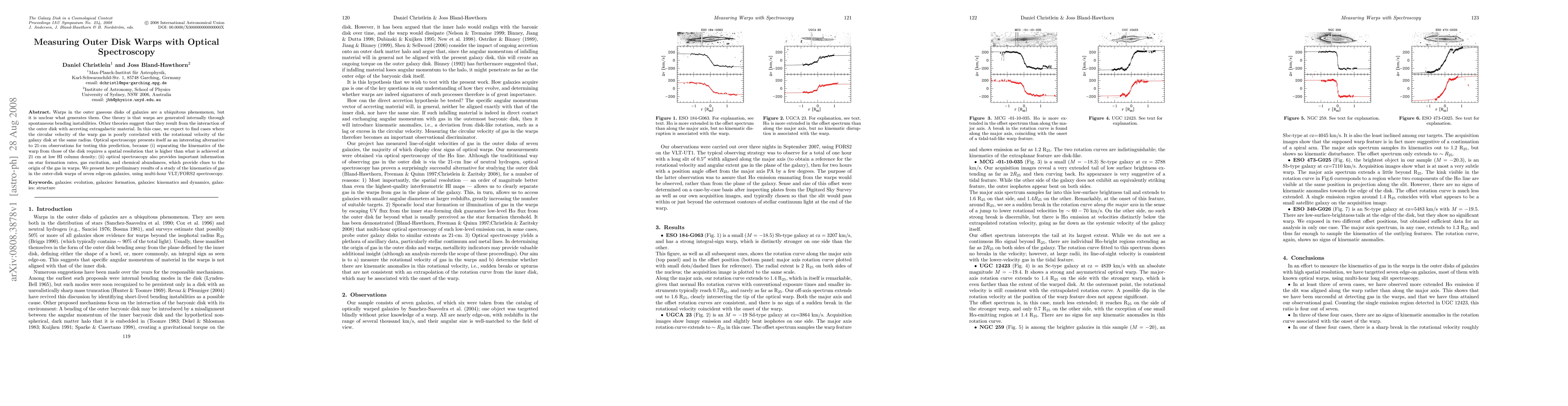 Warps in the outer gaseous disks of galaxies are a ubiquitous phenomenon, but it is unclear what generates them. One theory is that warps are generated internally through spontaneous bending instabilities. Other theories suggest that they result from the interaction of the outer disk with accreting extragalactic material. In this case, we expect to find cases where the circular velocity of the warp gas is poorly correlated with the rotational velocity of the galaxy disk at the same radius. Optical spectroscopy presents itself as an interesting alternative to 21-cm observations for testing this prediction, because (i) separating the kinematics of the warp from those of the disk requires a spatial resolution that is higher than what is achieved at 21 cm at low HI column density; (ii) optical spectroscopy also provides important information on star formation rates, gas excitation, and chemical abundances, which provide clues to the origin of the gas in warps. We present here preliminary results of a study of the kinematics of gas in the outer-disk warps of seven edge-on galaxies, using multi-hour VLT/FORS2 spectroscopy.