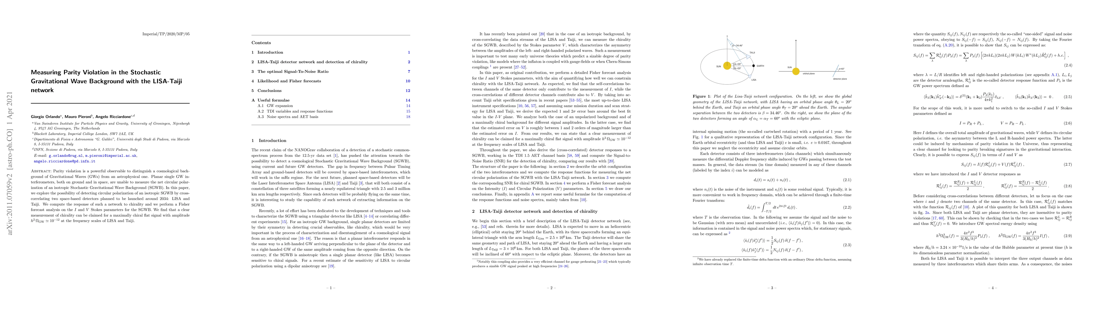 This paper investigates the potential of the LISA-Taiji network to detect parity violation in the Stochastic Gravitational Wave Background (SGWB) by cross-correlating two space-based detectors. The study finds that such a network can clearly measure chirality for a maximally chiral signal with a strength of $h^2 \, \Omega_{\rm GW} \simeq 10^{-12}$.