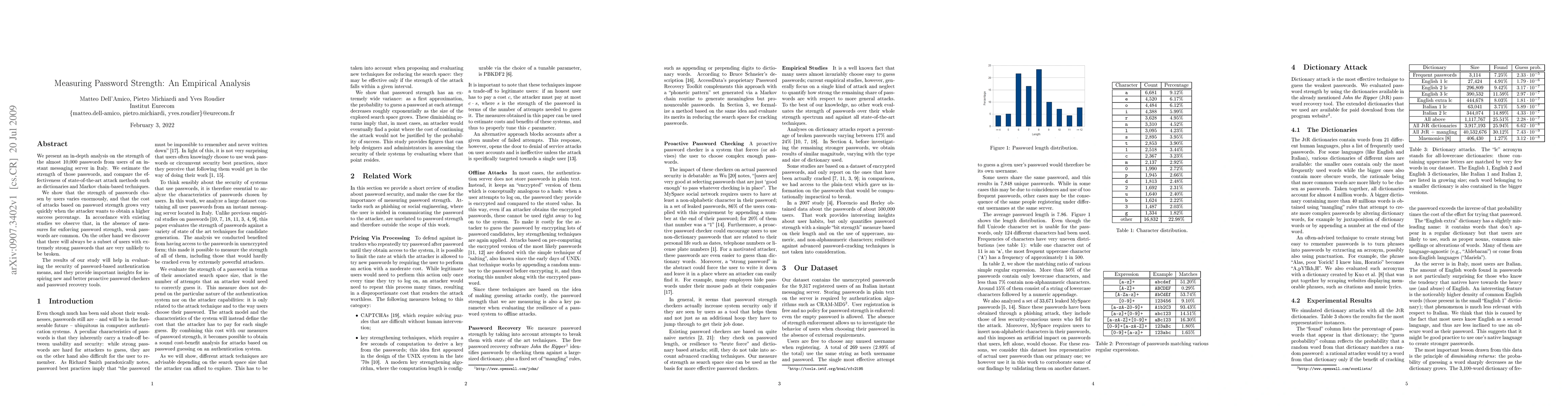 This study analyzes the strength of nearly 10,000 passwords from users of an Italian instant messaging server, revealing significant variability in password strength and the escalating cost of attacks to achieve higher success rates. The findings highlight the prevalence of weak passwords without strength enforcement, while also noting a minority of users with highly secure passwords.