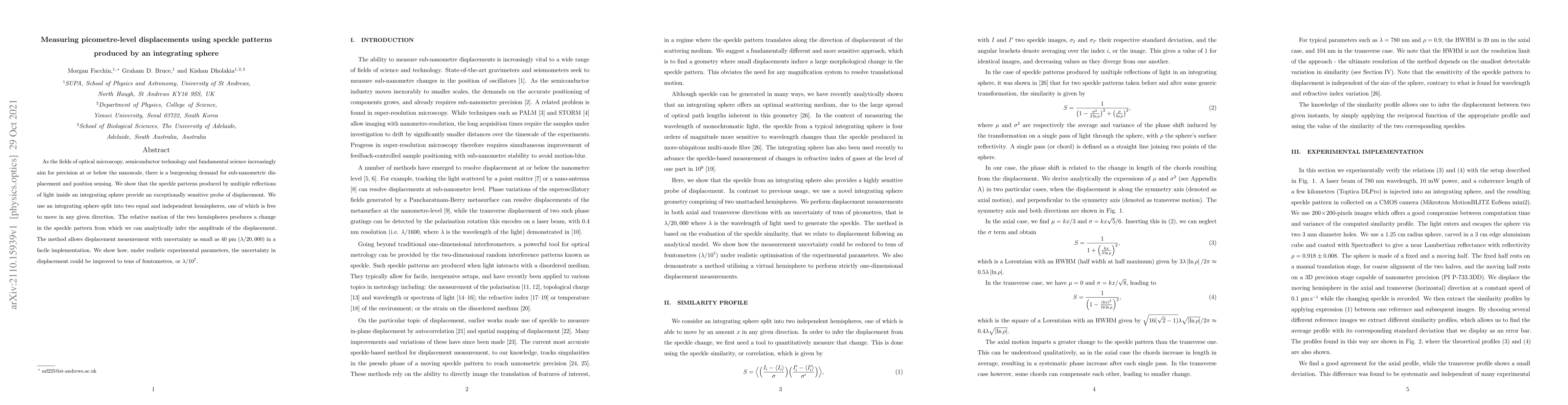 Researchers developed a method to measure sub-nanometric displacements using speckle patterns produced by an integrating sphere, allowing for precision of 40 pm with minimal experimental setup.