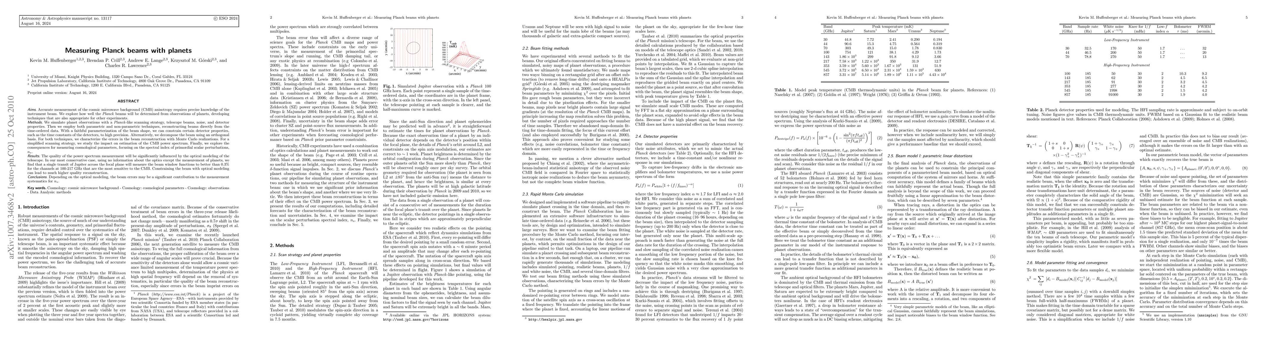 This research paper explores techniques to accurately measure the Planck beams using observations of planets, applicable to other experiments as well. By simulating planet observations, the authors employ parametric and non-parametric techniques to reconstruct beams, constraining detector properties like time constants with high precision. They find that a single Jupiter transit can measure beam window functions to better than 0.3% for 100-217 GHz channels, crucial for CMB anisotropy measurements and cosmological parameter estimations like the spectral index n_s. Optical modeling significantly influences beam reconstruction quality and potential systematics in n_s measurements.