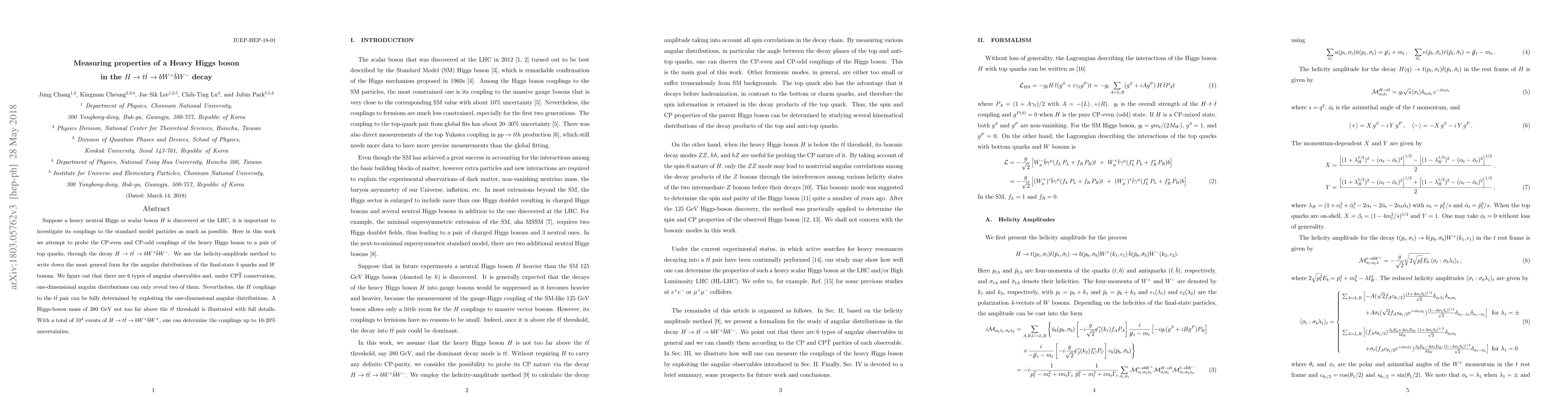 This paper investigates the CP-even and CP-odd couplings of a heavy Higgs boson $H$ to top quarks via the decay $H \to t\bar t \to bW^+ \bar b W^-$, using the helicity-amplitude method. It finds that while one-dimensional angular distributions reveal only two of six types of angular observables, they are sufficient to fully determine the $H$ couplings to the $t\bar t$ pair with 10-20% uncertainties using $10^4$ events at a Higgs mass of 380 GeV.