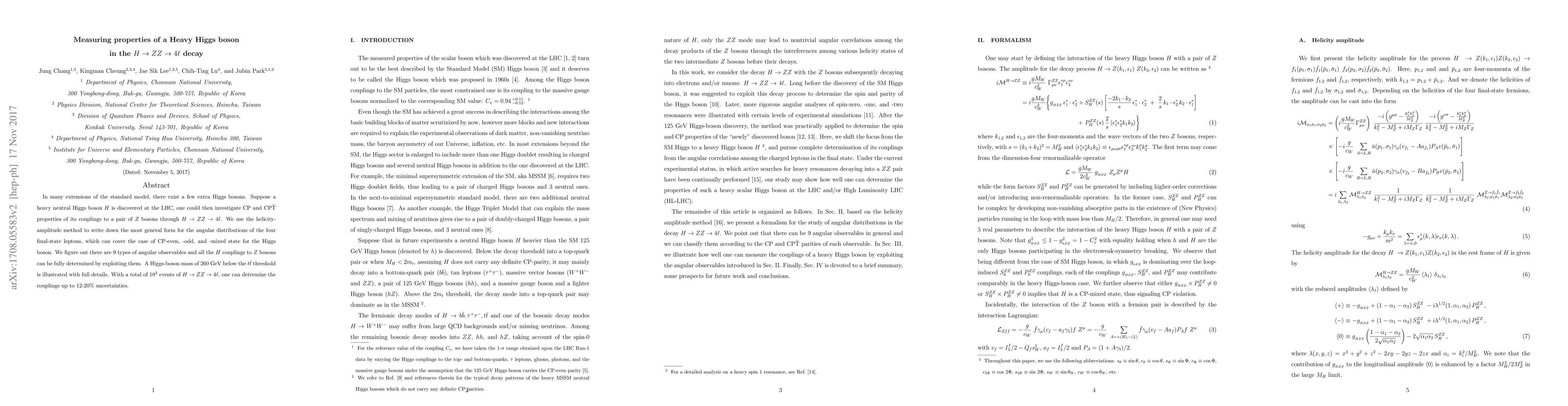 This paper explores the properties of a heavy Higgs boson (H) in the $H\to ZZ \to 4\ell$ decay, using the helicity-amplitude method to determine its CP and CPT properties. It identifies 9 angular observables that can fully determine the H couplings to Z bosons, achieving coupling determinations with 12-20% uncertainties from 1000 events.