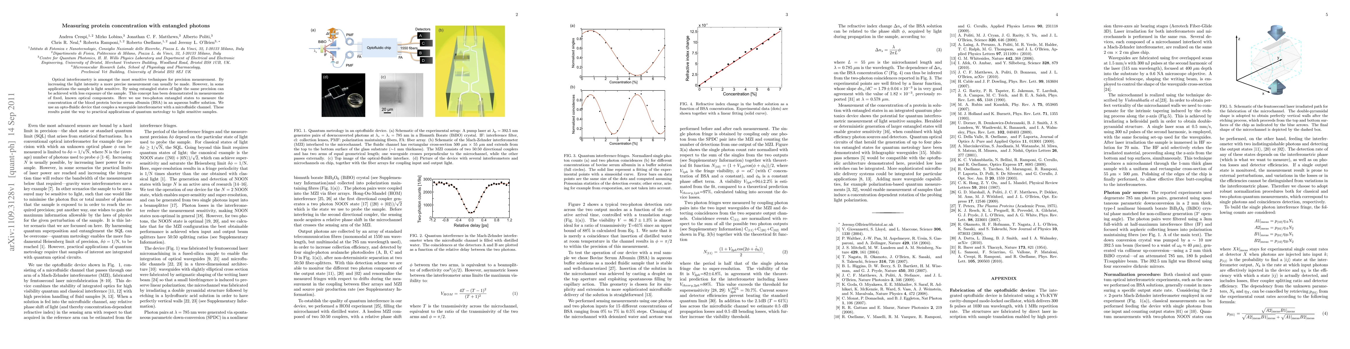 Optical interferometry is amongst the most sensitive techniques for precision measurement. By increasing the light intensity a more precise measurement can usually be made. However, in some applications the sample is light sensitive. By using entangled states of light the same precision can be achieved with less exposure of the sample. This concept has been demonstrated in measurements of fixed, known optical components. Here we use two-photon entangled states to measure the concentration of the blood protein bovine serum albumin (BSA) in an aqueous buffer solution. We use an opto-fluidic device that couples a waveguide interferometer with a microfluidic channel. These results point the way to practical applications of quantum metrology to light sensitive samples.