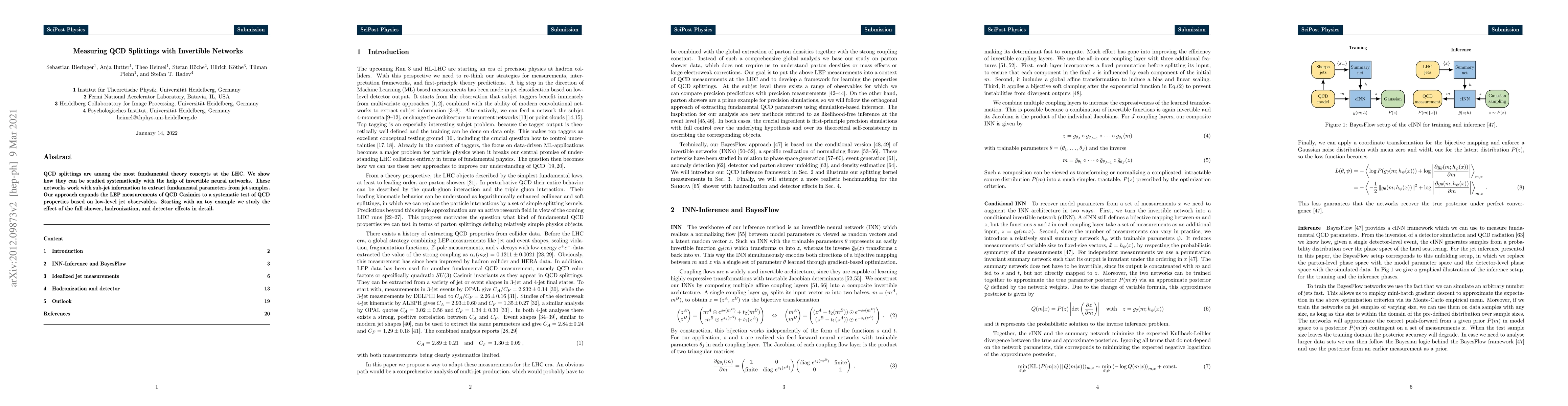 QCD splittings are among the most fundamental theory concepts at the LHC. We show how they can be studied systematically with the help of invertible neural networks. These networks work with sub-jet information to extract fundamental parameters from jet samples. Our approach expands the LEP measurements of QCD Casimirs to a systematic test of QCD properties based on low-level jet observables. Starting with an toy example we study the effect of the full shower, hadronization, and detector effects in detail.