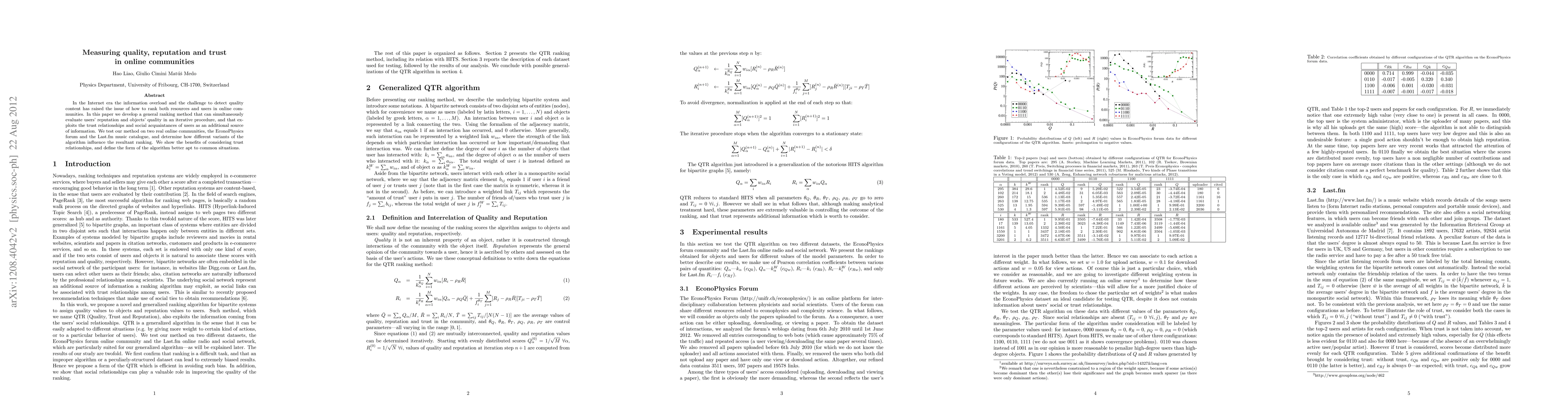 This paper proposes a ranking method for evaluating both user reputation and content quality in online communities, leveraging trust relationships and social connections. The method is tested on two platforms, demonstrating the benefits of incorporating trust and identifying the most effective algorithm variant for practical use.
