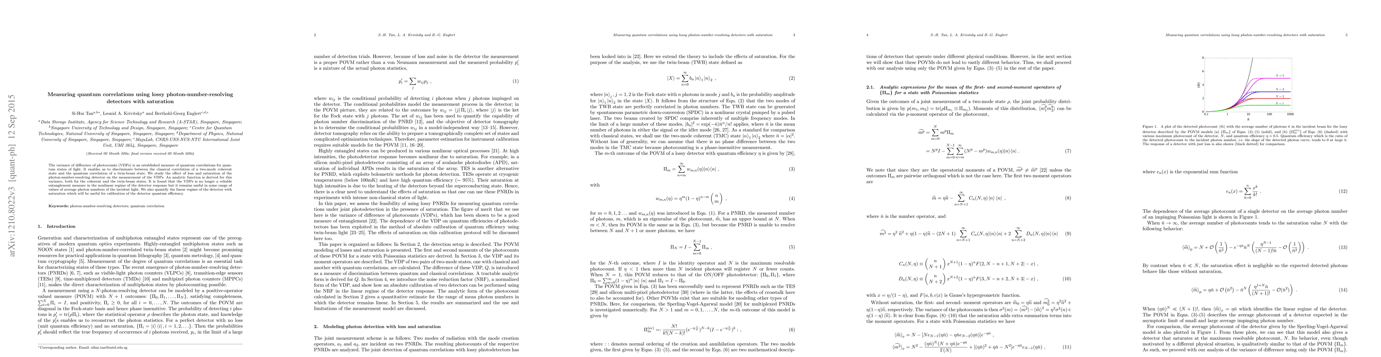 This paper investigates how loss and saturation in photon-number-resolving detectors affect the measurement of quantum correlations via variance of difference of photocounts (VDPs). It finds that VDPs lose reliability in the nonlinear regime but remain useful for certain average photon numbers, and quantifies the linear regime for detector calibration.