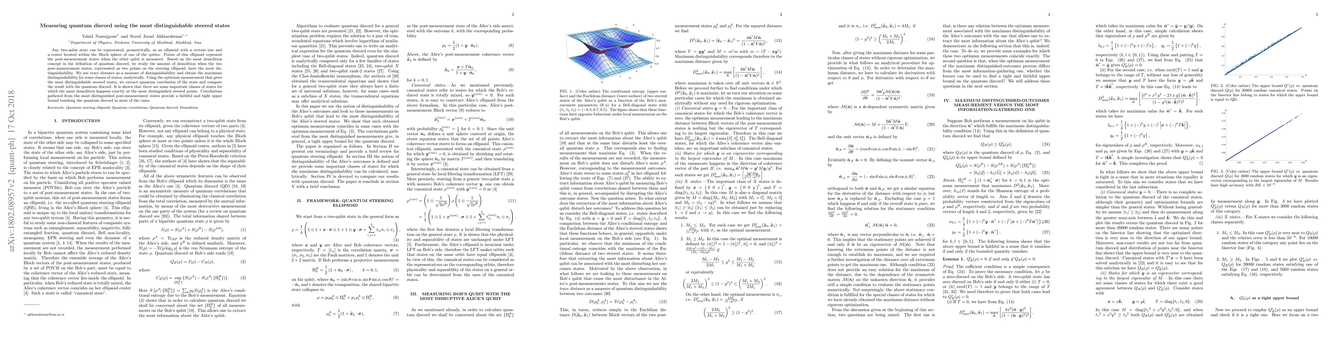 This paper measures quantum discord by analyzing the most distinguishable steered states of two-qubit systems, using trace distance as a metric. It finds that the maximum distinguishability aligns with the maximum demolition in certain classes of states, providing a tight upper bound on quantum discord.