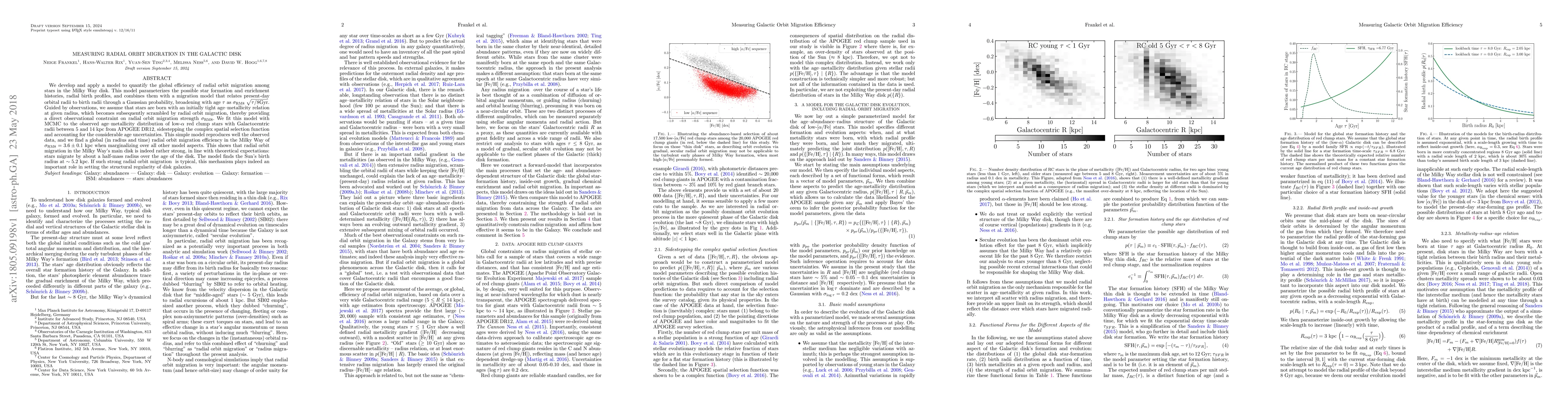 This paper develops a model to quantify the efficiency of radial orbit migration in the Milky Way's disk, finding a global migration efficiency of $\sigma_\mathrm{RM8} = 3.6\pm 0.1$ kpc, indicating strong migration that aligns with theoretical predictions. The model estimates the Sun's birth radius at approximately 5.2 kpc.