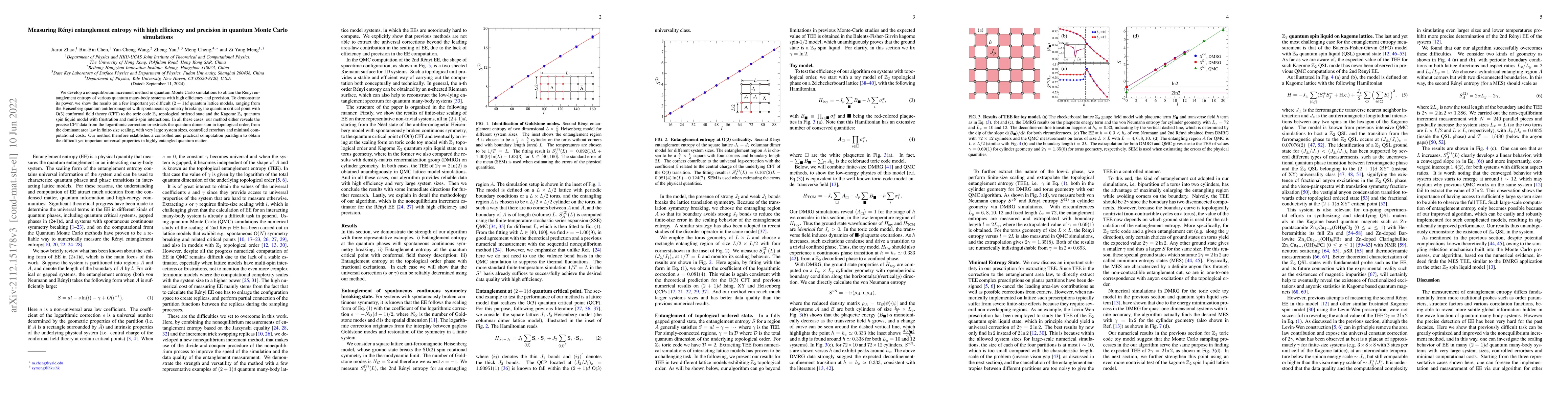 We develop a nonequilibrium increment method in quantum Monte Carlo simulations to obtain the R\'enyi entanglement entropy of various quantum many-body systems with high efficiency and precision. To demonstrate its power, we show the results on a few important yet difficult $(2+1)d$ quantum lattice models, ranging from the Heisenberg quantum antiferromagnet with spontaneous symmetry breaking, the quantum critical point with O(3) conformal field theory (CFT) to the toric code $\Z_2$ topological ordered state and the Kagome $\Z_2$ quantum spin liquid model with frustration and multi-spin interactions. In all these cases, our method either reveals the precise CFT data from the logarithmic correction or extracts the quantum dimension in topological order, from the dominant area law in finite-size scaling, with very large system sizes, controlled errorbars and minimal computational costs. Our method therefore establishes a controlled and practical computation paradigm to obtain the difficult yet important universal properties in highly entangled quantum matter.