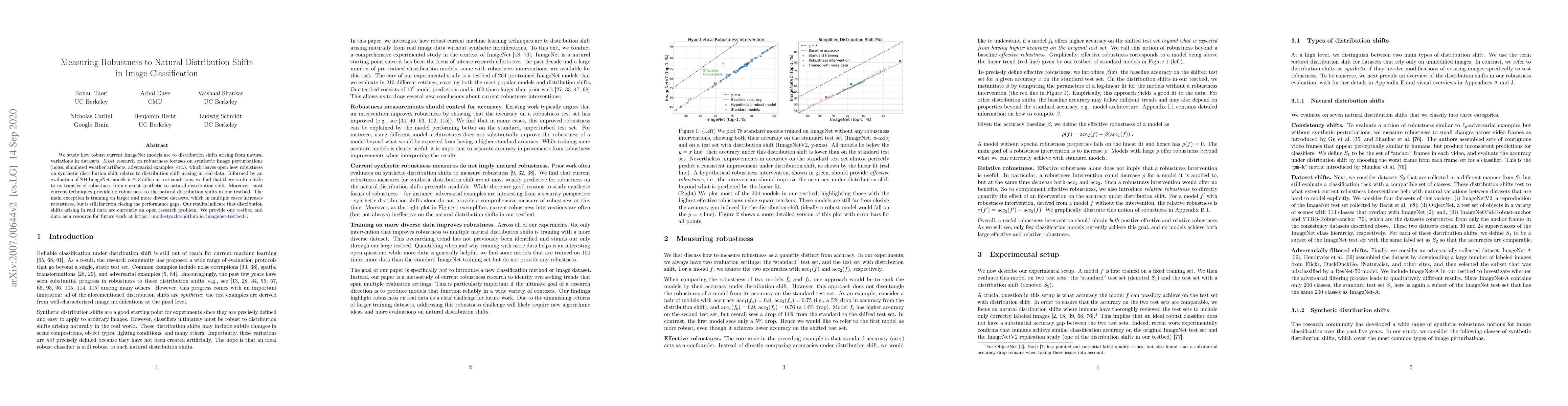 This paper investigates the robustness of ImageNet models to natural distribution shifts in image classification, finding little transfer of robustness from synthetic to real shifts. Training on larger, more diverse datasets shows some improvement but does not close performance gaps, highlighting the need for further research on real-world distribution shifts.