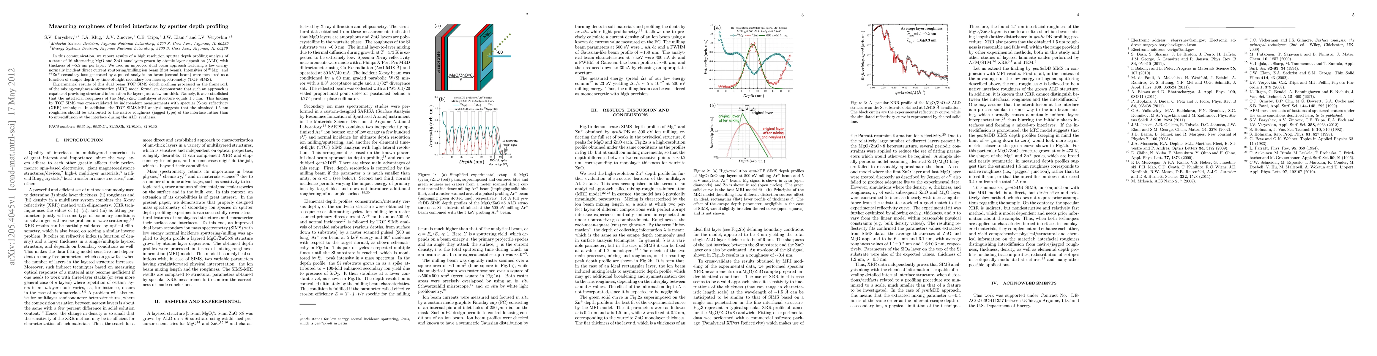 This study employs high-resolution sputter depth profiling to measure the roughness of buried interfaces in a stack of 16 alternating MgO and ZnO nanolayers using dual beam TOF SIMS. The analysis reveals an interfacial roughness of 1.5 nm, confirmed by specular X-ray reflectivity, and suggests this roughness is due to native interface jaggedness rather than interdiffusion.