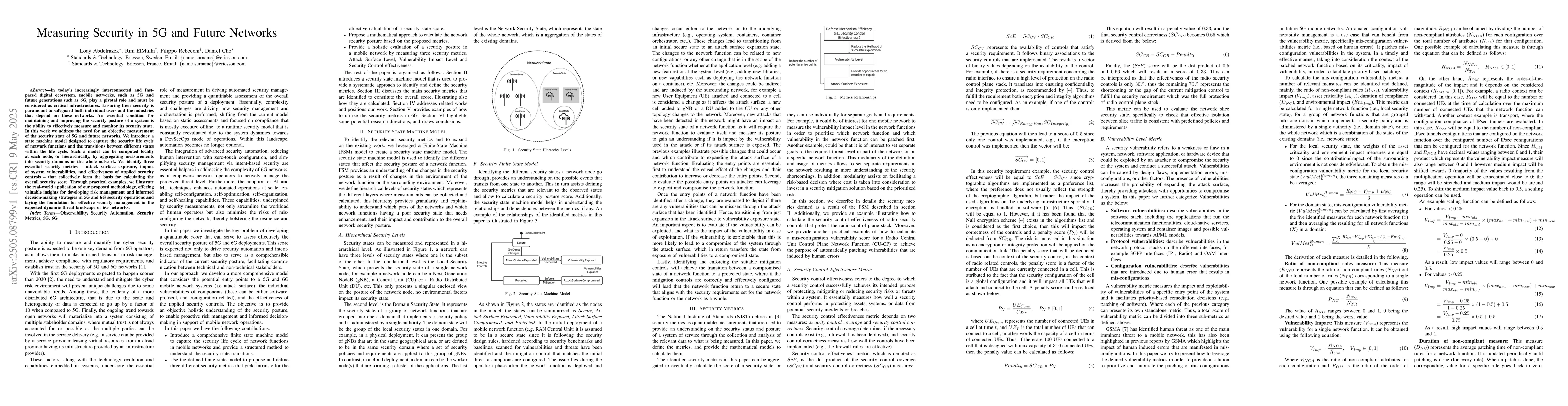 This work stands out by offering a comprehensive approach to security measurement in mobile networks, combining local and hierarchical computation of security states and proposing a set of key security metrics.