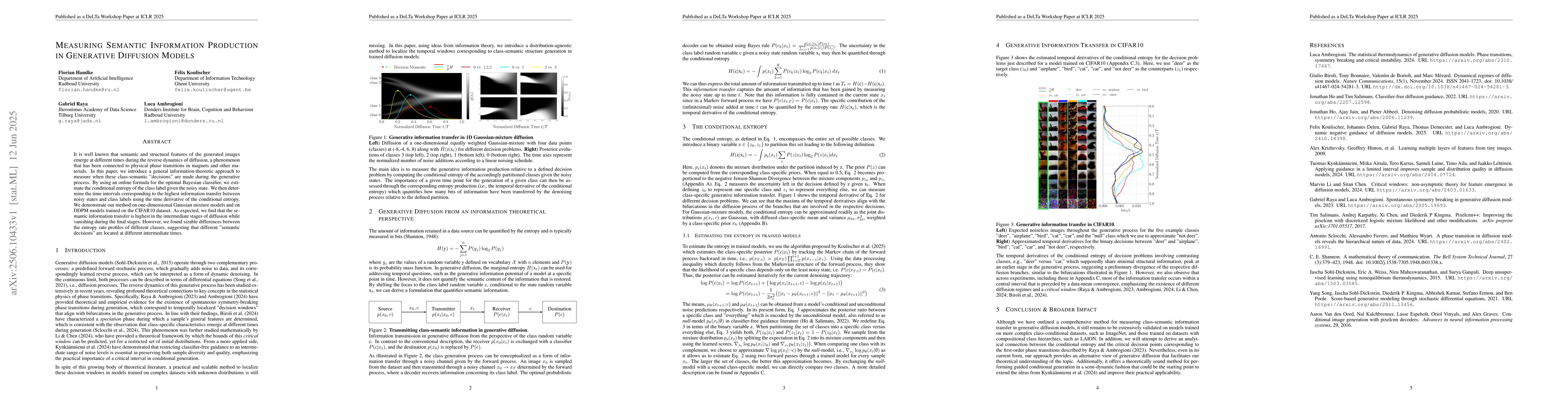 It is well known that semantic and structural features of the generated images emerge at different times during the reverse dynamics of diffusion, a phenomenon that has been connected to physical phase transitions in magnets and other materials. In this paper, we introduce a general information-theoretic approach to measure when these class-semantic "decisions" are made during the generative process. By using an online formula for the optimal Bayesian classifier, we estimate the conditional entropy of the class label given the noisy state. We then determine the time intervals corresponding to the highest information transfer between noisy states and class labels using the time derivative of the conditional entropy. We demonstrate our method on one-dimensional Gaussian mixture models and on DDPM models trained on the CIFAR10 dataset. As expected, we find that the semantic information transfer is highest in the intermediate stages of diffusion while vanishing during the final stages. However, we found sizable differences between the entropy rate profiles of different classes, suggesting that different "semantic decisions" are located at different intermediate times.