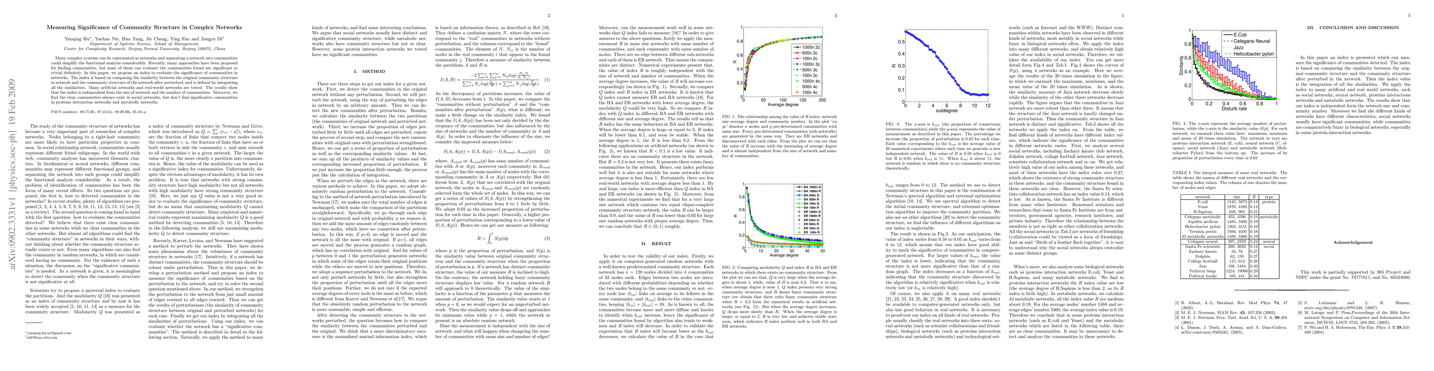 The index is a new method for measuring community significance in networks, which combines the concepts of similarity and perturbation.