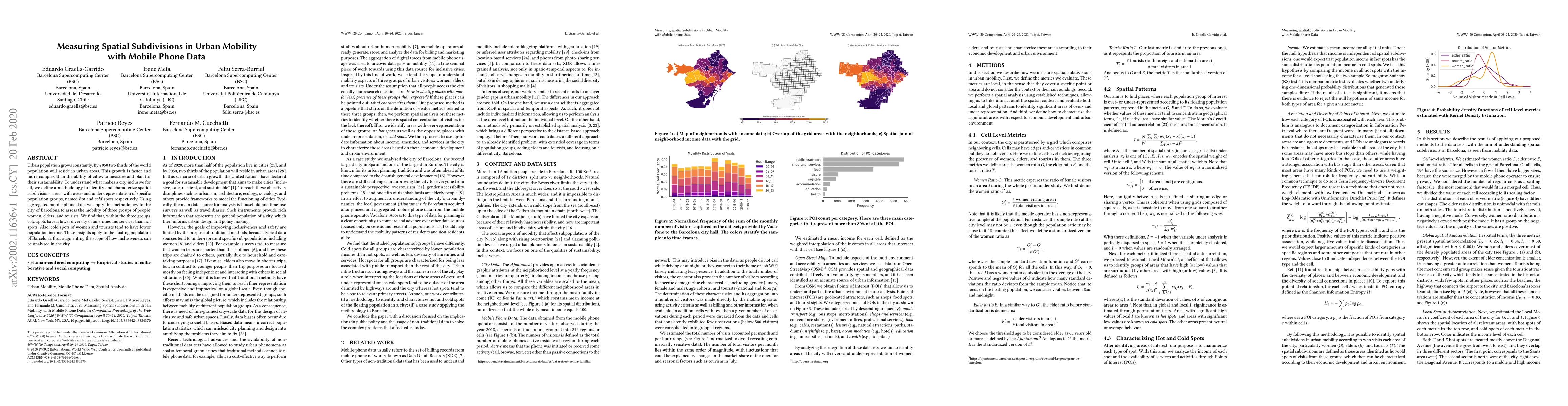 This paper proposes a methodology to identify spatial subdivisions in urban areas using mobile phone data, applying it to Barcelona to analyze the mobility of women, elders, and tourists. Findings reveal that cold spots, areas with under-representation, have lower amenity diversity and income compared to hot spots, providing insights into urban inclusivity.