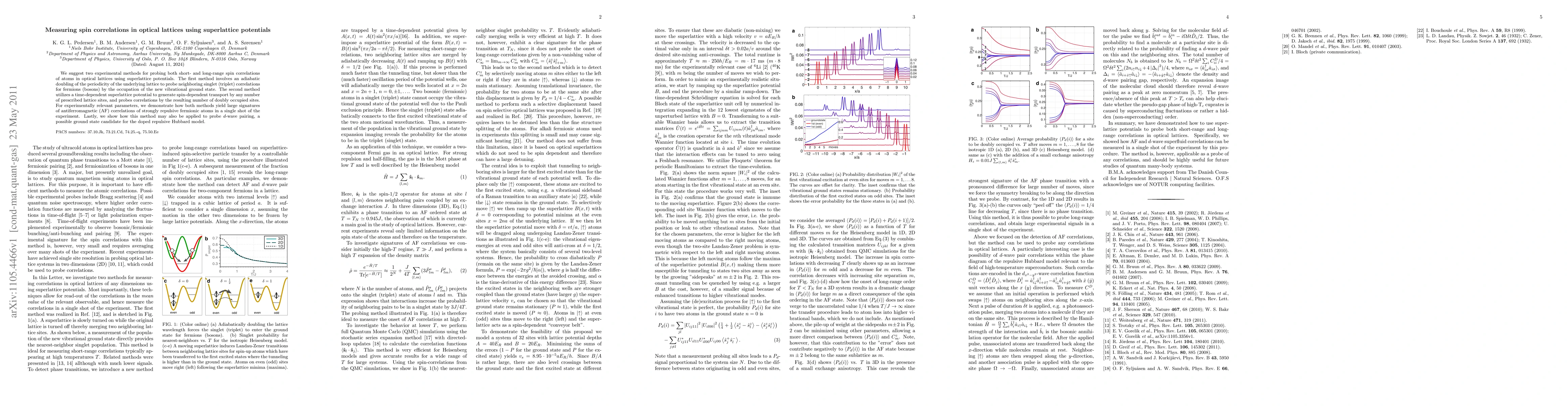 This paper proposes two experimental methods to measure spin correlations in optical lattices using superlattice potentials. The first method adiabatically doubles the lattice's periodicity to detect singlet/triplet correlations, while the second uses time-dependent superlattices to generate spin-dependent transport, revealing correlations through doubly occupied sites. Both methods can effectively detect antiferromagnetic correlations in fermionic atoms.