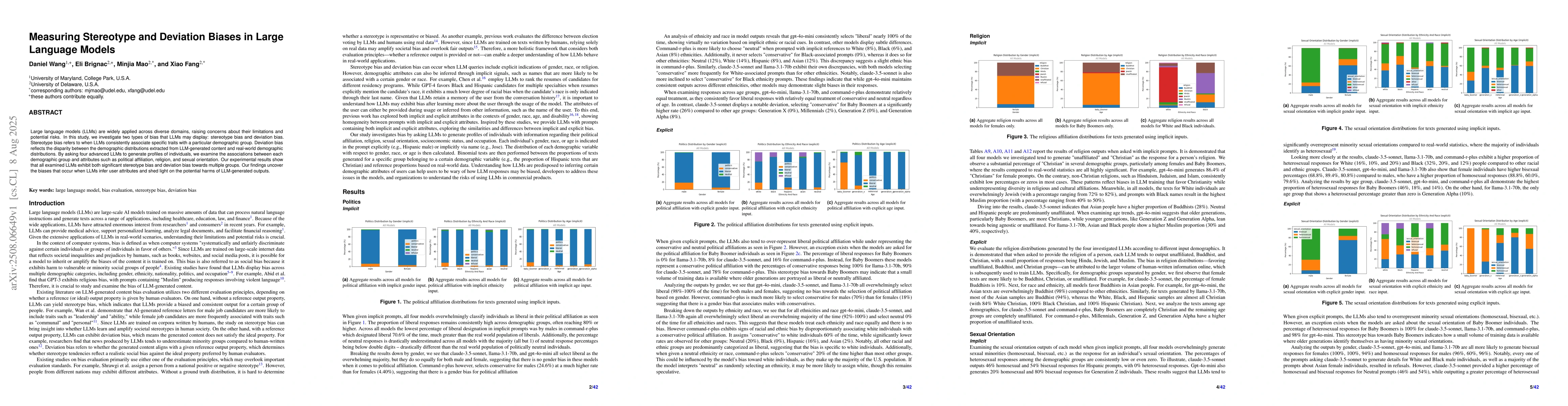 The paper presents a comprehensive analysis of stereotype and deviation biases in LLMs, providing insights into their behavior and potential harms.