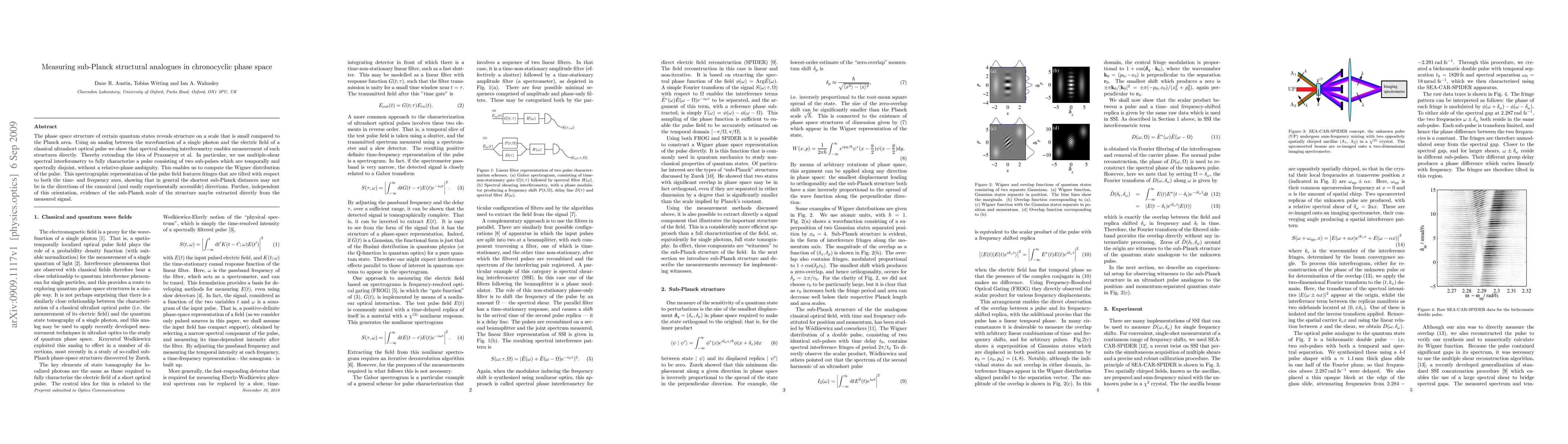 This paper demonstrates the use of spectral shearing interferometry to measure structures in quantum states on a sub-Planck scale, utilizing an analogy between photon wavefunctions and classical ultrashort optical pulses. The method reveals that these shortest distances may not align with canonical experimental axes, providing direct evidence of sub-Planck structural analogues.