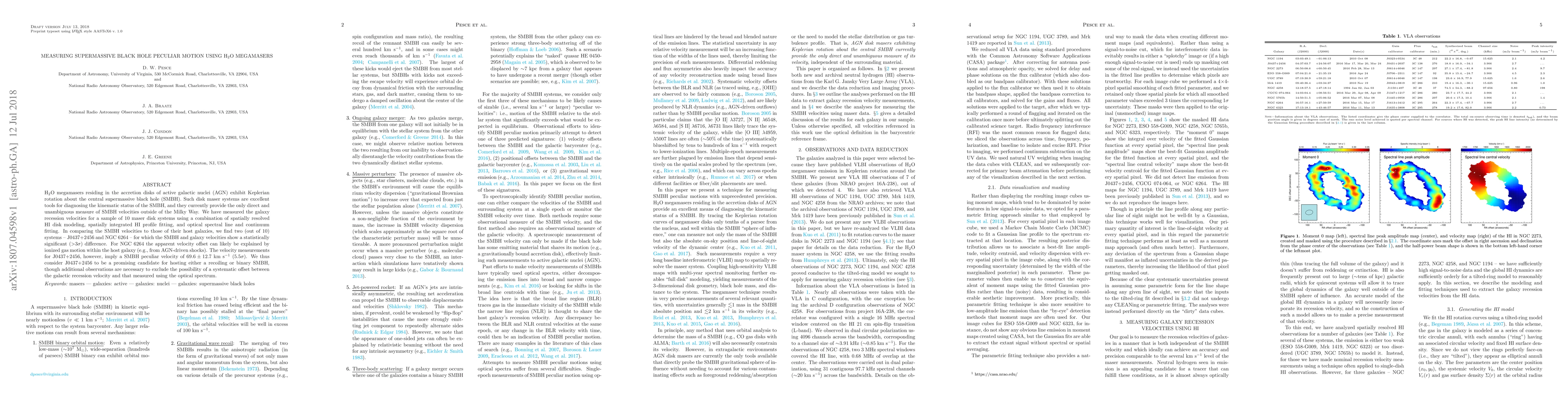 This study measures supermassive black hole velocities using H2O megamasers in AGN accretion disks, finding two systems with significant SMBH-galaxy velocity differences. J0437+2456 shows a substantial offset, suggesting a recoiling or binary SMBH, while NGC 6264's offset is likely due to AGN-driven shocks.