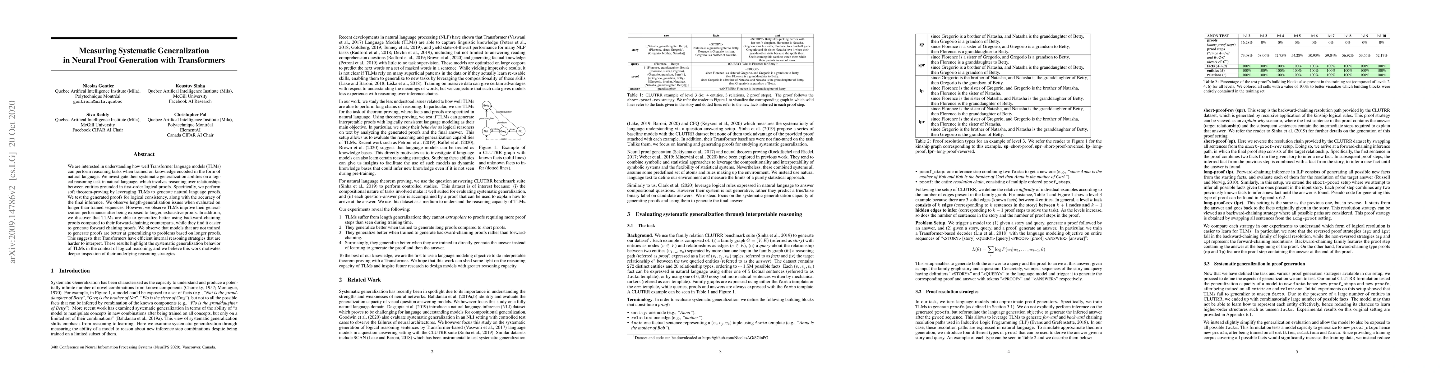 We are interested in understanding how well Transformer language models (TLMs) can perform reasoning tasks when trained on knowledge encoded in the form of natural language. We investigate their systematic generalization abilities on a logical reasoning task in natural language, which involves reasoning over relationships between entities grounded in first-order logical proofs. Specifically, we perform soft theorem-proving by leveraging TLMs to generate natural language proofs. We test the generated proofs for logical consistency, along with the accuracy of the final inference. We observe length-generalization issues when evaluated on longer-than-trained sequences. However, we observe TLMs improve their generalization performance after being exposed to longer, exhaustive proofs. In addition, we discover that TLMs are able to generalize better using backward-chaining proofs compared to their forward-chaining counterparts, while they find it easier to generate forward chaining proofs. We observe that models that are not trained to generate proofs are better at generalizing to problems based on longer proofs. This suggests that Transformers have efficient internal reasoning strategies that are harder to interpret. These results highlight the systematic generalization behavior of TLMs in the context of logical reasoning, and we believe this work motivates deeper inspection of their underlying reasoning strategies.