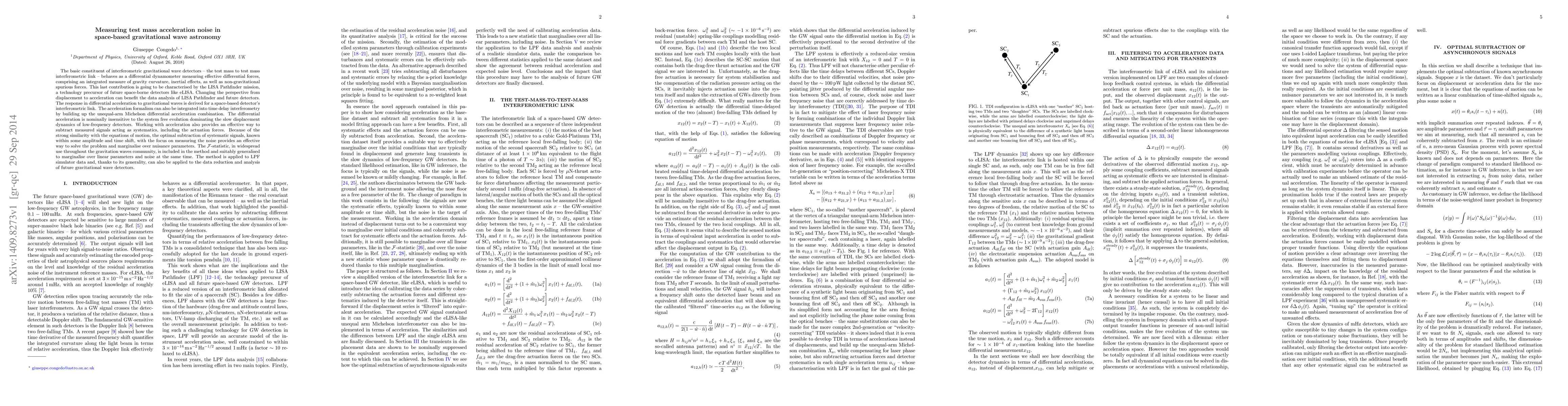 This paper develops a method to measure test mass acceleration noise in space-based gravitational wave detectors, focusing on the LISA Pathfinder mission. It proposes using differential acceleration instead of displacement to better analyze data and effectively subtract systematic signals, employing the $\mathcal{F}$-statistic for noise marginalization.