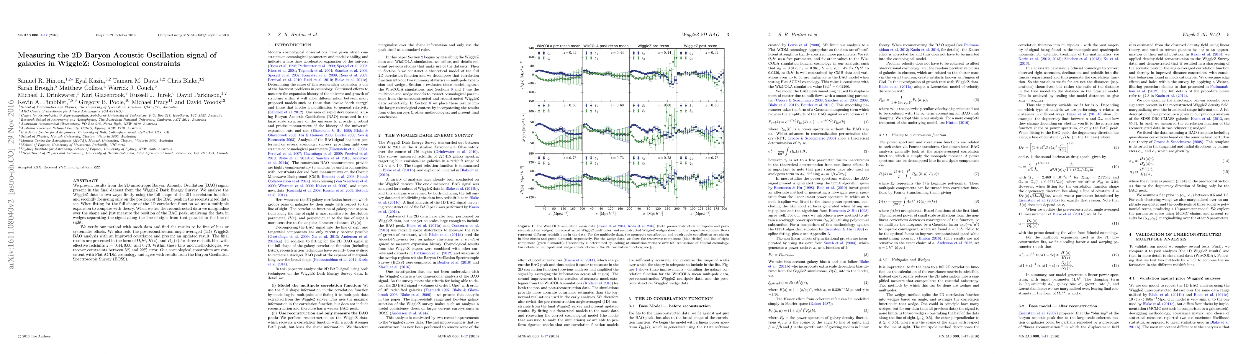 This paper measures the 2D Baryon Acoustic Oscillation (BAO) signal in the WiggleZ Dark Energy Survey, analyzing both the full shape and the peak position of the BAO signal. The results provide cosmological constraints in terms of $\Omega_c h^2$, $H(z)$, and $D_A(z)$ for three redshift bins, consistent with Flat $\Lambda$CDM cosmology and in agreement with the Baryon Oscillation Spectroscopic Survey (BOSS).