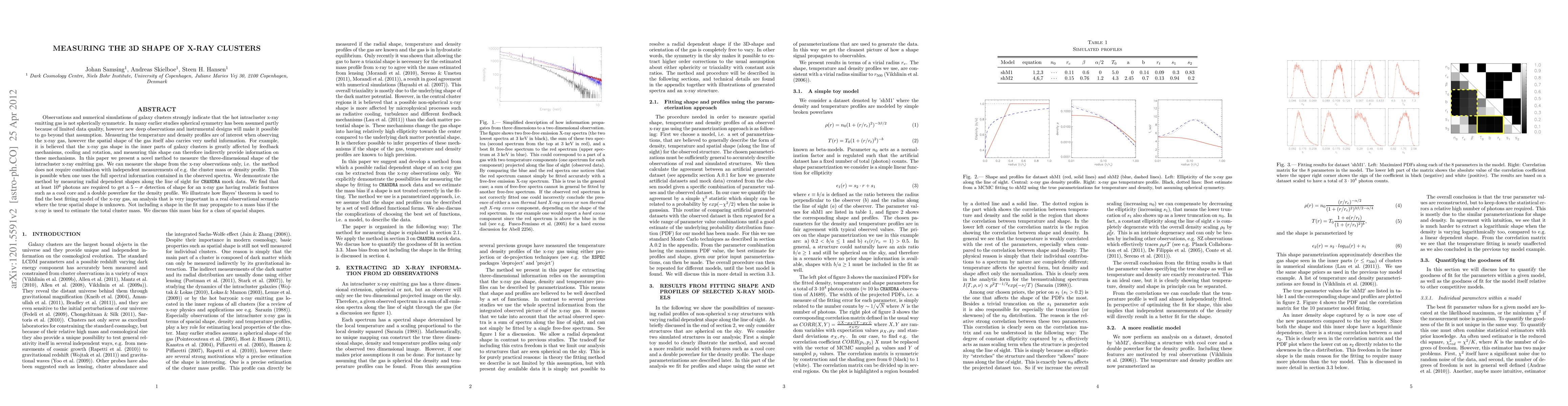 This paper introduces a novel method to measure the three-dimensional shape of intracluster x-ray gas without requiring additional mass or density profile data, relying solely on spectral information from x-ray observations. The method demonstrates the necessity of at least 10^6 photons for a reliable detection and discusses the potential mass bias if the shape is not included in the analysis.
