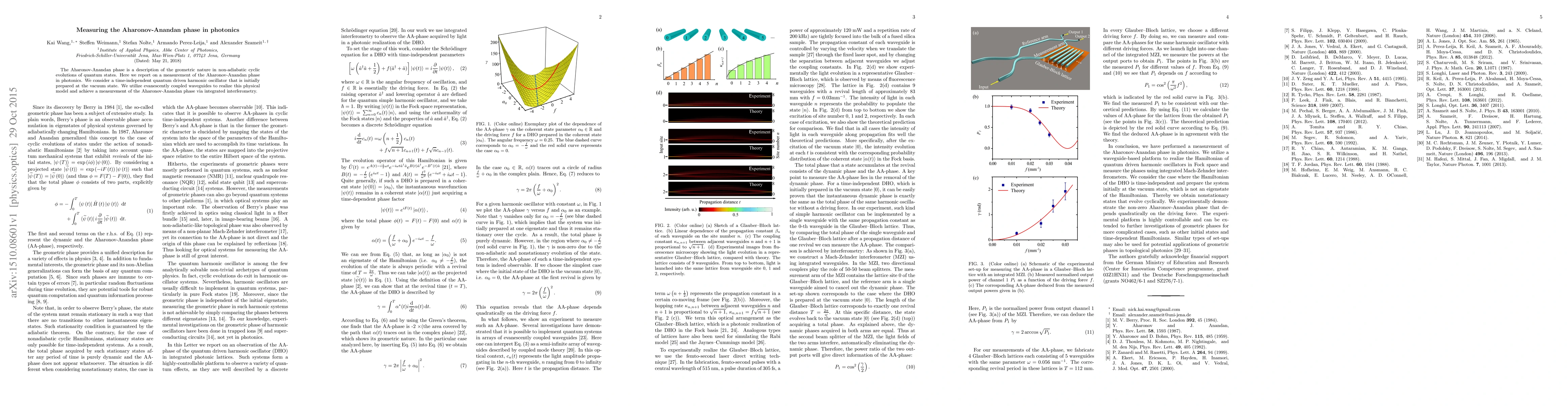 This paper reports the measurement of the Aharonov-Anandan phase in photonic systems using evanescently coupled waveguides and integrated interferometry. The study focuses on a time-independent quantum driven harmonic oscillator initially prepared in the vacuum state.