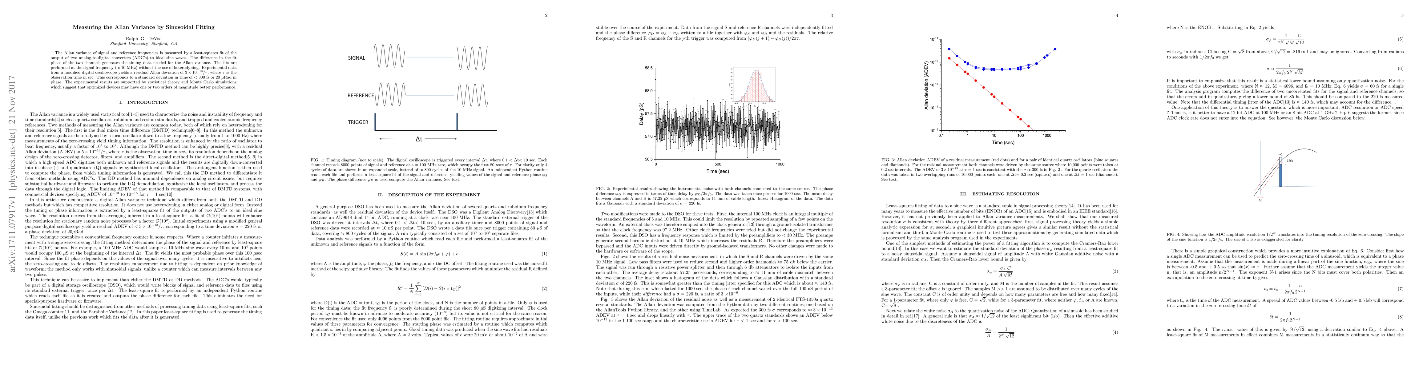 The Allan variance of signal and reference frequencies is measured by a least-squares fit of the output of two analog-to-digital converters (ADC's) to ideal sine waves. The difference in the fit phase of the two channels generates the timing data needed for the Allan variance. The fits are performed at the signal frequency ($\approx 10 $ MHz) without the use of heterodyning. Experimental data from a modified digital oscilloscope yields a residual Allan deviation of $3 \times 10^{-13}/\tau $, where $\tau$ is the observation time in sec. This corresponds to a standard deviation in time of $<$ 300 fs or 20 $\mu$Rad in phase. The experimental results are supported by statistical theory and Monte Carlo simulations which suggest that optimized devices may have one or two orders of magnitude better performance.