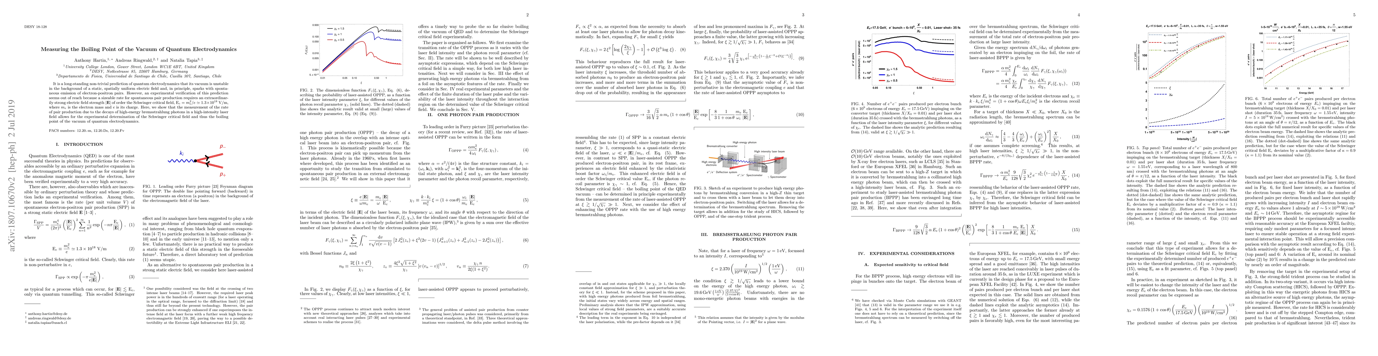 It is a long-standing non-trivial prediction of quantum electrodynamics that its vacuum is unstable in the background of a static, spatially uniform electric field and, in principle, sparks with spontaneous emission of electron-positron pairs. However, an experimental verification of this prediction seems out of reach because a sizeable rate for spontaneous pair production requires an extraordinarily strong electric field strength $|\mathbf E|$ of order the Schwinger critical field, ${\rm E}_c=m_e^2/e\simeq 1.3\times 10^{18}\ {\rm V/m}$, where $m_e$ is the electron mass and $e$ is its charge. Here, we show that the measurement of the rate of pair production due to the decays of high-energy bremsstrahlung photons in a high-intensity laser field allows for the experimental determination of the Schwinger critical field and thus the boiling point of the vacuum of quantum electrodynamics.