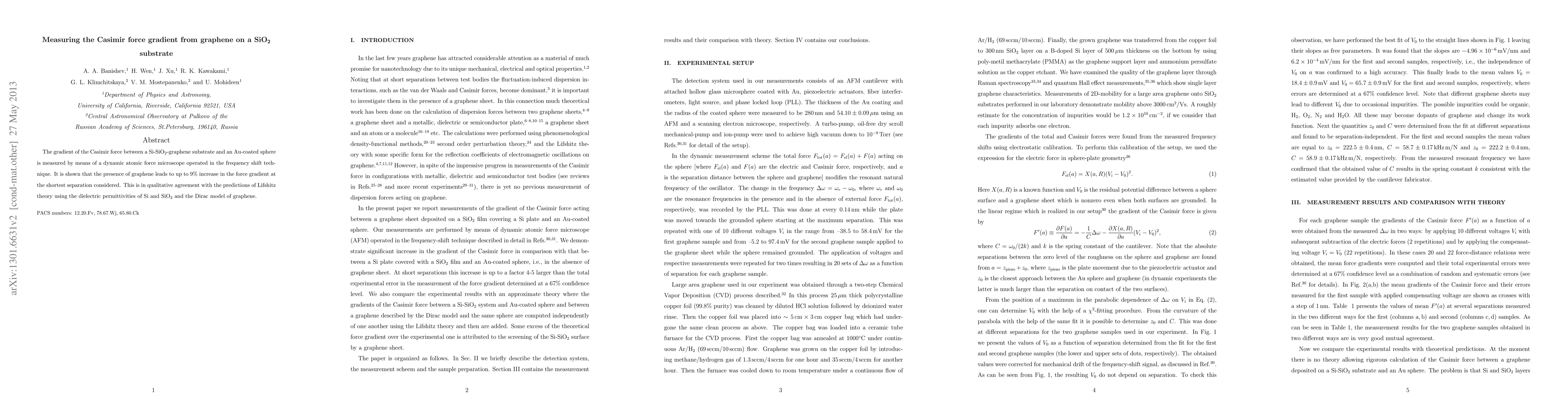 The gradient of the Casimir force between a Si-SiO${}_2$-graphene substrate and an Au-coated sphere is measured by means of a dynamic atomic force microscope operated in the frequency shift technique. It is shown that the presence of graphene leads to up to 9% increase in the force gradient at the shortest separation considered. This is in qualitative agreement with the predictions of an additive theory using the Dirac model of graphene.