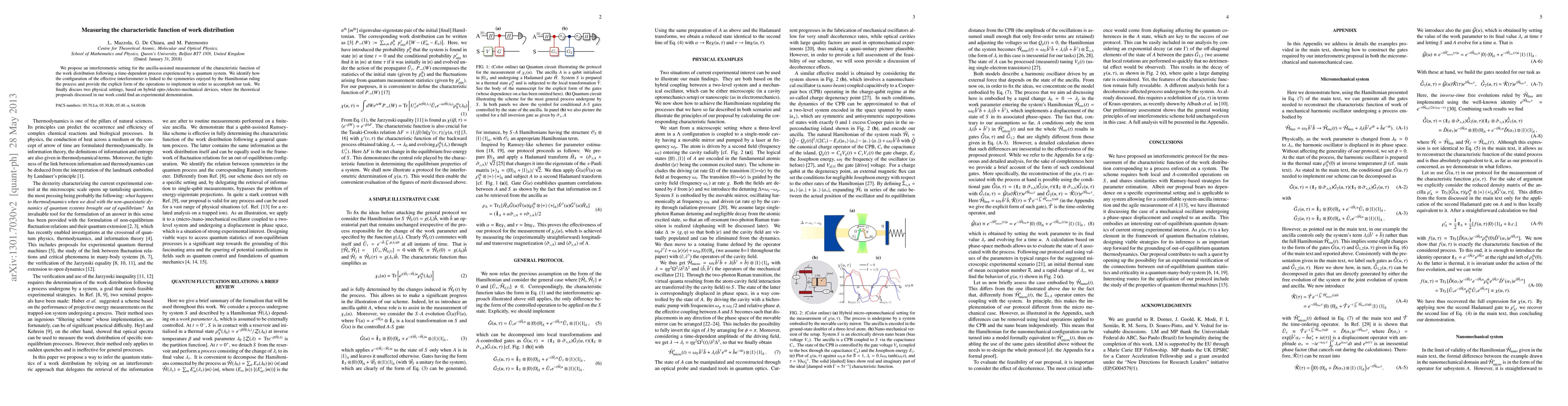 We propose an interferometric setting for the ancilla-assisted measurement of the characteristic function of the work distribution following a time-dependent process experienced by a quantum system. We identify how the configuration of the effective interferometer is linked to the symmetries enjoyed by the Hamiltonian ruling the process and provide the explicit form of the operations to implement in order to accomplish our task. We finally discuss two physical settings, based on hybrid opto-/electro-mechanical devices, where the theoretical proposals discussed in our work could find an experimental demonstration.