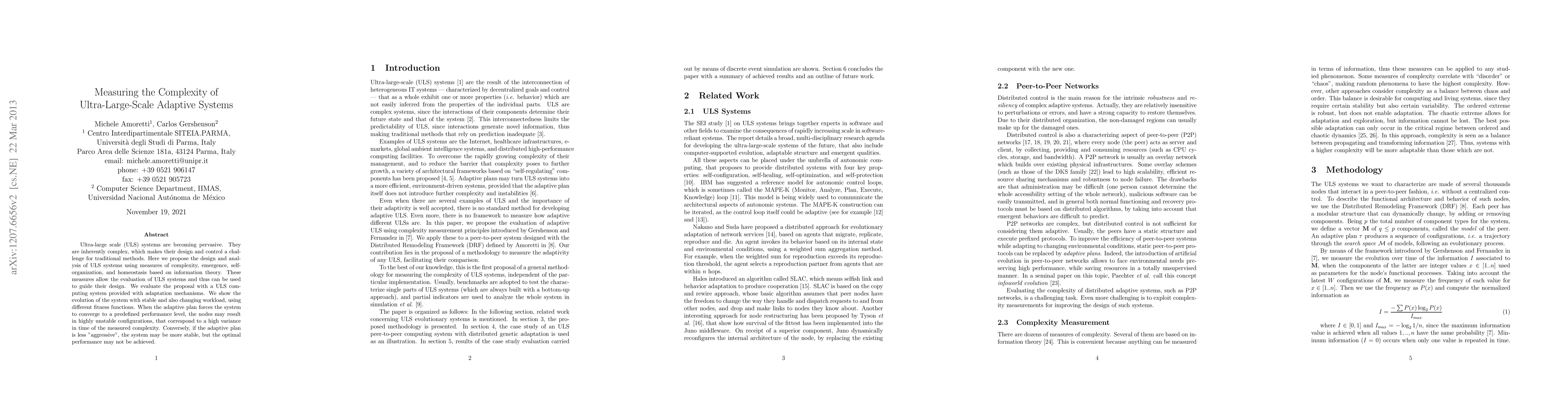 A research paper proposes using complexity measures to design and analyze ultra-large-scale adaptive systems, finding that aggressive adaptation plans can lead to unstable configurations, while less aggressive approaches may prioritize stability over optimal performance.
