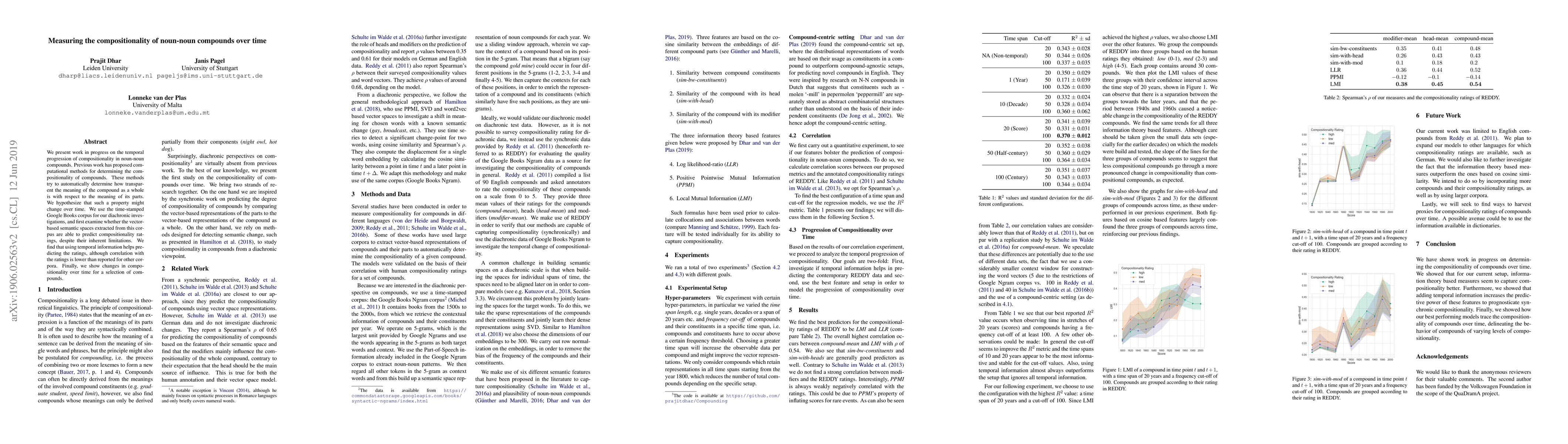 We present work in progress on the temporal progression of compositionality in noun-noun compounds. Previous work has proposed computational methods for determining the compositionality of compounds. These methods try to automatically determine how transparent the meaning of the compound as a whole is with respect to the meaning of its parts. We hypothesize that such a property might change over time. We use the time-stamped Google Books corpus for our diachronic investigations, and first examine whether the vector-based semantic spaces extracted from this corpus are able to predict compositionality ratings, despite their inherent limitations. We find that using temporal information helps predicting the ratings, although correlation with the ratings is lower than reported for other corpora. Finally, we show changes in compositionality over time for a selection of compounds.