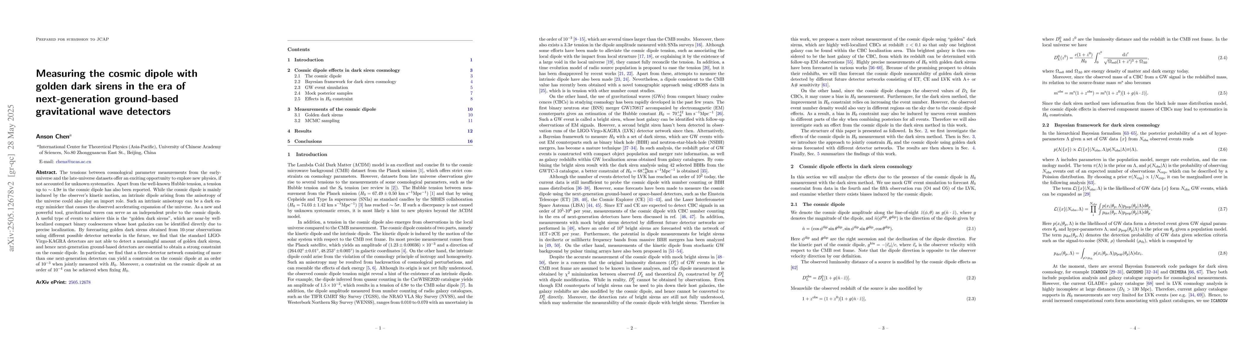 The study forecasts golden dark sirens from 10-year observations using various future detector networks to constrain the cosmic dipole.
