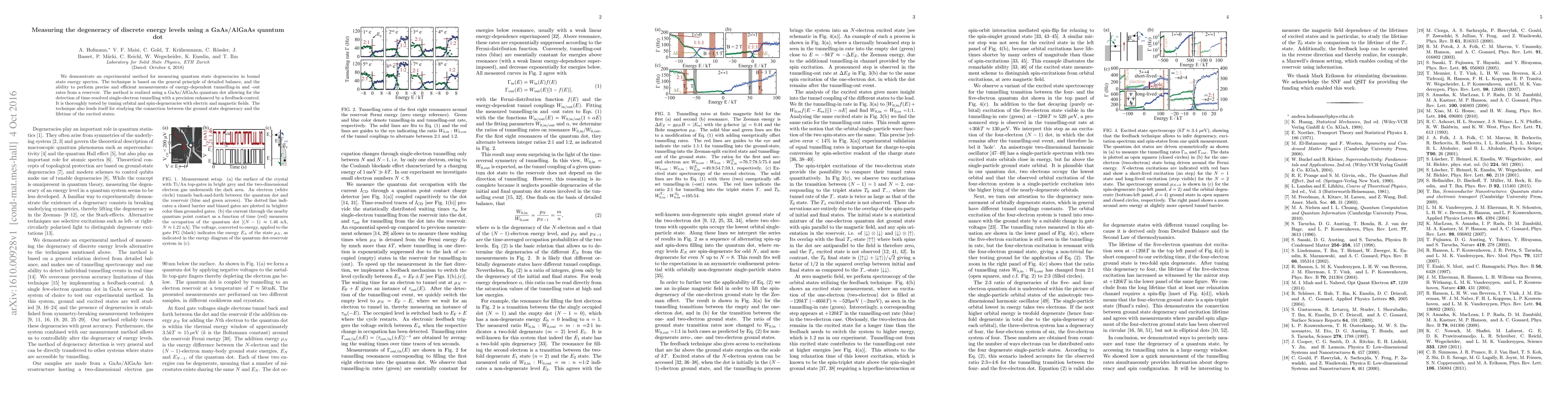 We demonstrate an experimental method for measuring quantum state degeneracies in bound state energy spectra. The technique is based on the general principle of detailed balance, and the ability to perform precise and efficient measurements of energy-dependent tunnelling-in and -out rates from a reservoir. The method is realized using a GaAs/AlGaAs quantum dot allowing for the detection of time-resolved single-electron tunnelling with a precision enhanced by a feedback-control. It is thoroughly tested by tuning orbital and spin-degeneracies with electric and magnetic fields. The technique also lends itself for studying the connection between the ground state degeneracy and the lifetime of the excited states.