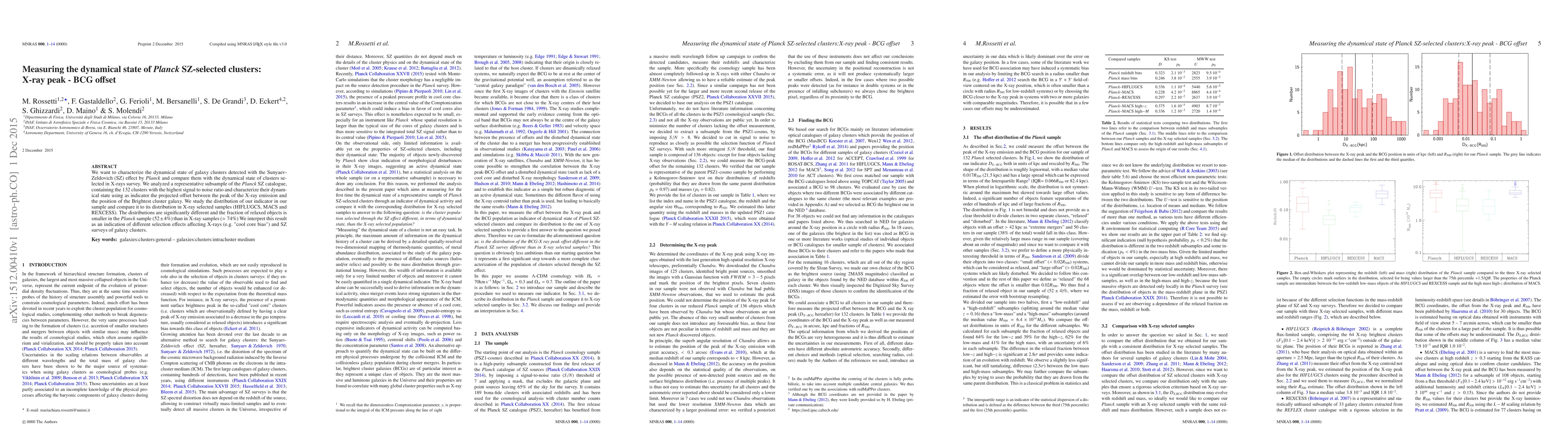 This study characterizes the dynamical state of Planck SZ-selected galaxy clusters by comparing their X-ray peak-BCG offsets to those in X-ray selected clusters. The analysis reveals a significantly lower fraction of relaxed clusters in the Planck sample, suggesting different selection biases between SZ and X-ray surveys.