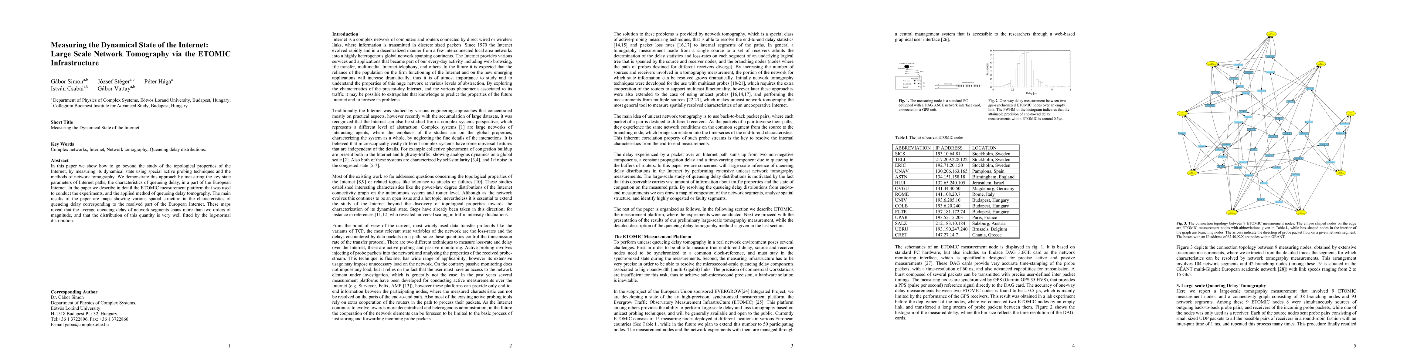 This paper presents a method for measuring the dynamical state of the Internet using active probing and network tomography via the ETOMIC infrastructure, focusing on queueing delay characteristics in a part of the European Internet. The results include maps revealing significant spatial variations in queueing delay, showing an average delay spanning over two orders of magnitude and a log-normal distribution fitting.